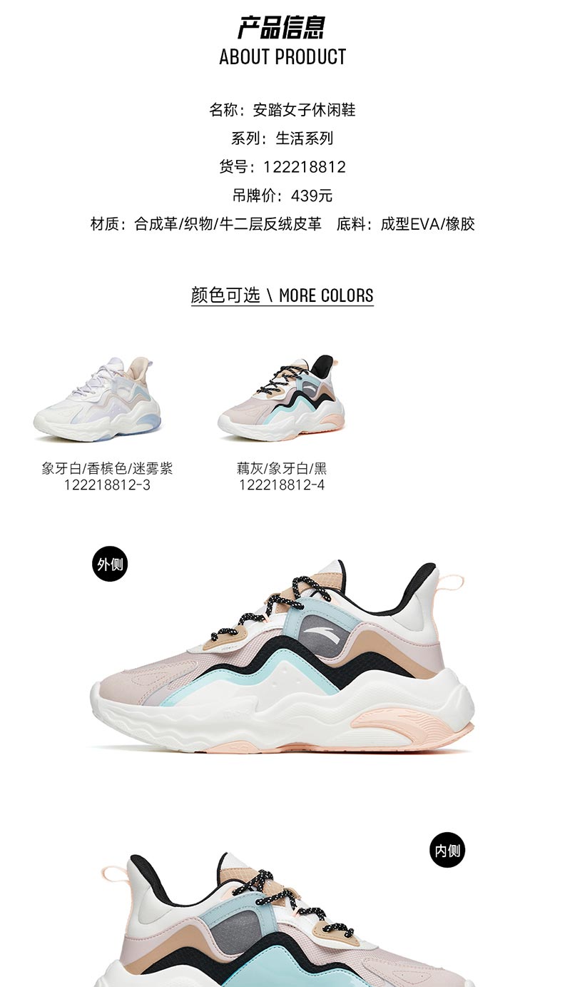 安踏MIX休闲鞋女鞋冬季运动跑鞋子综训鞋老爹鞋122218812