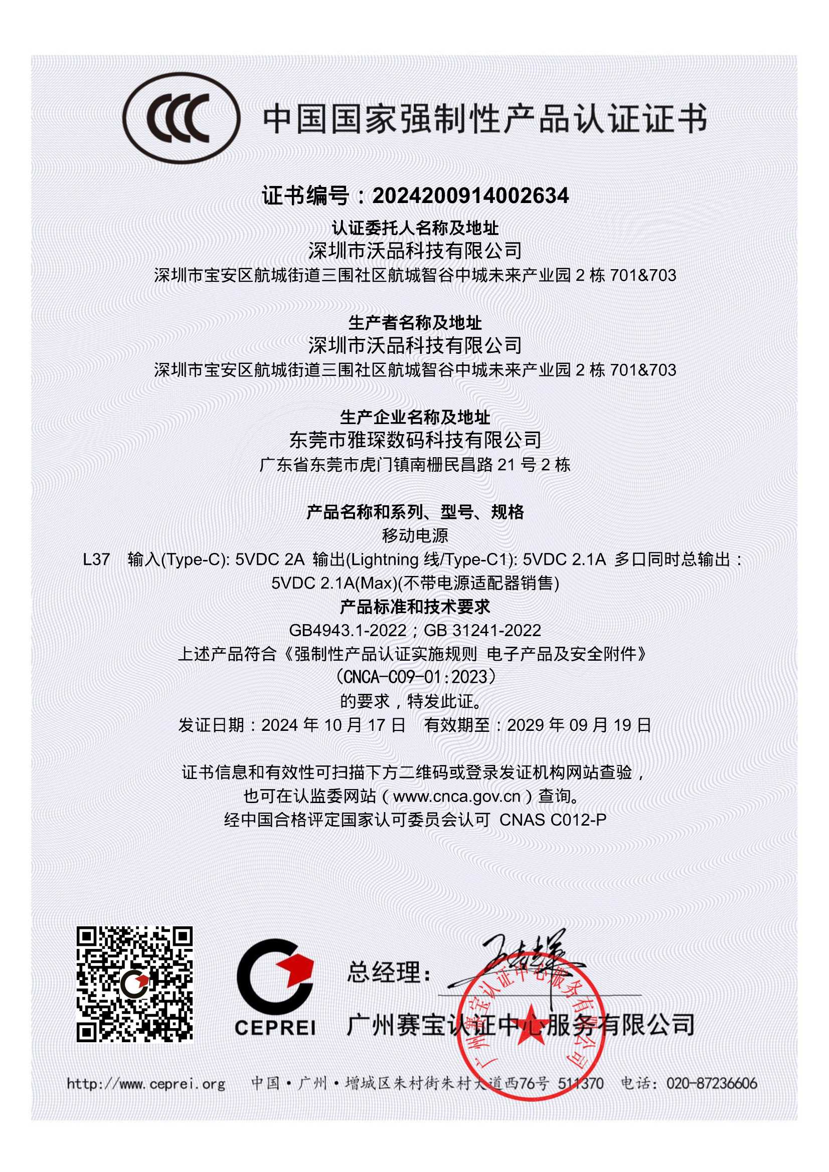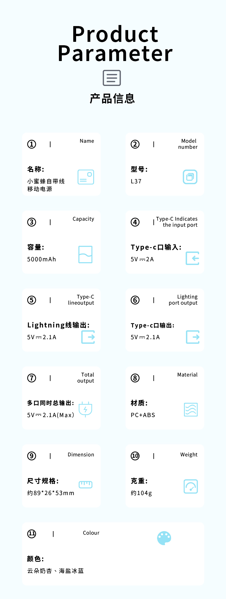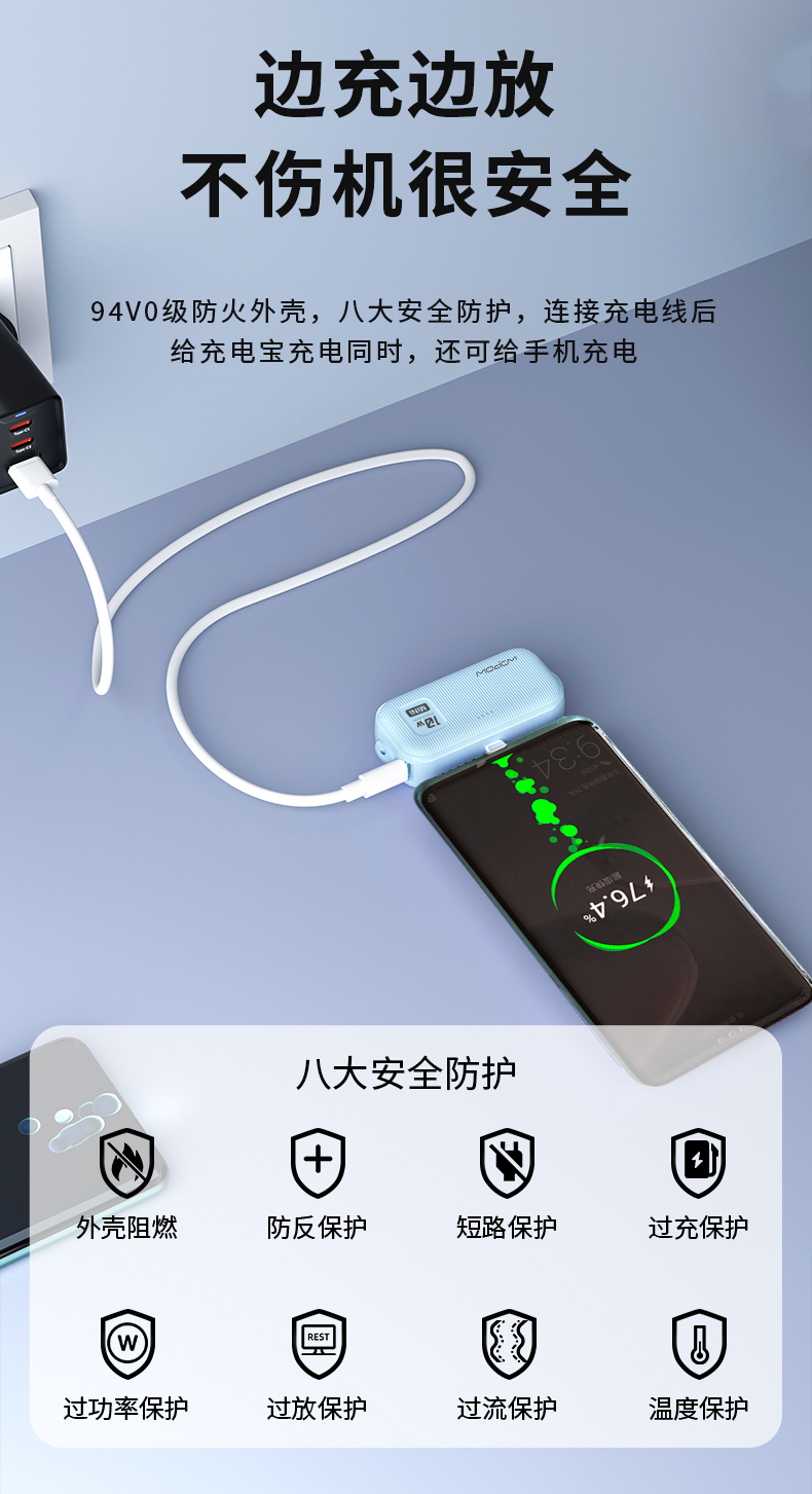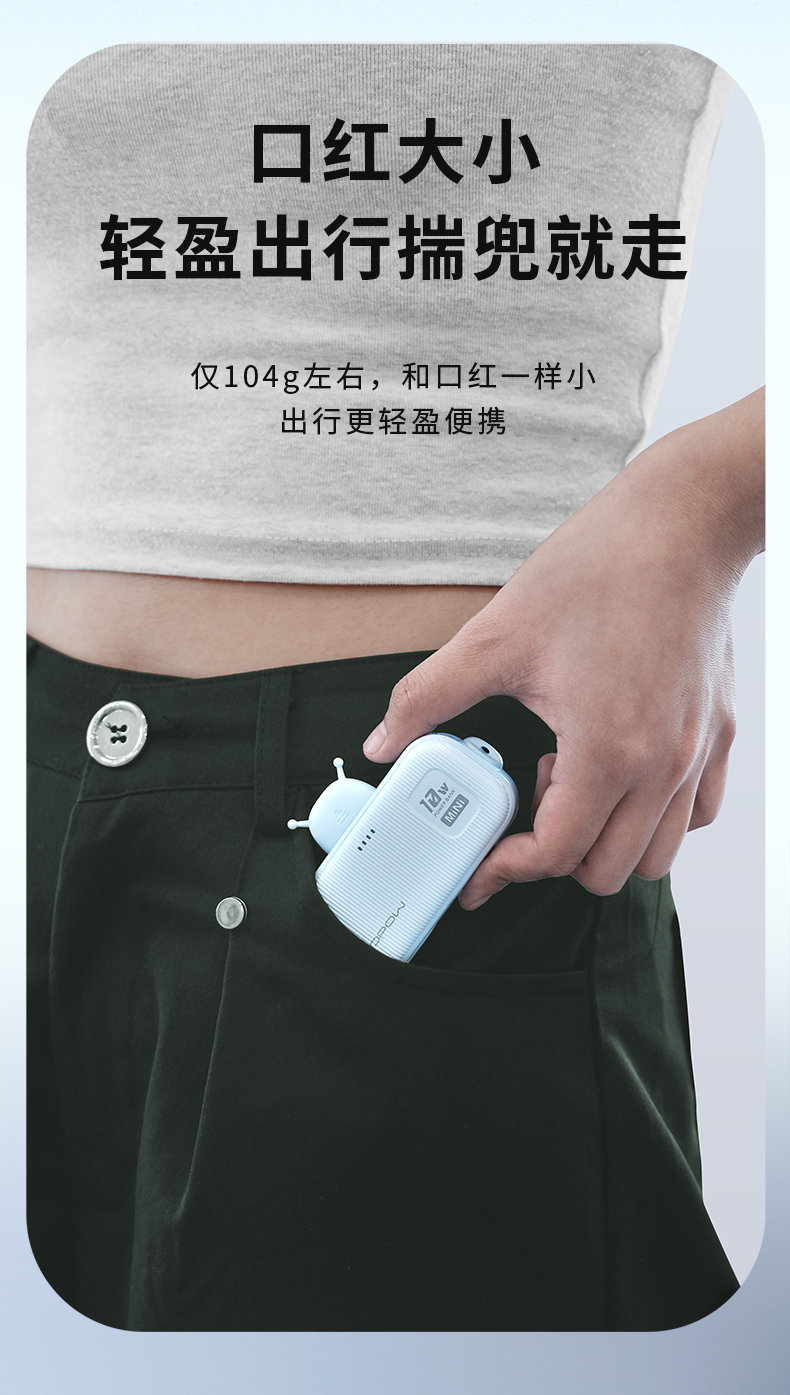 【自营】 沃品WOPOW 3C认证 小蜜蜂口袋 充电宝 自带Lightning接口 Type-c线 5000mAh 2色可选