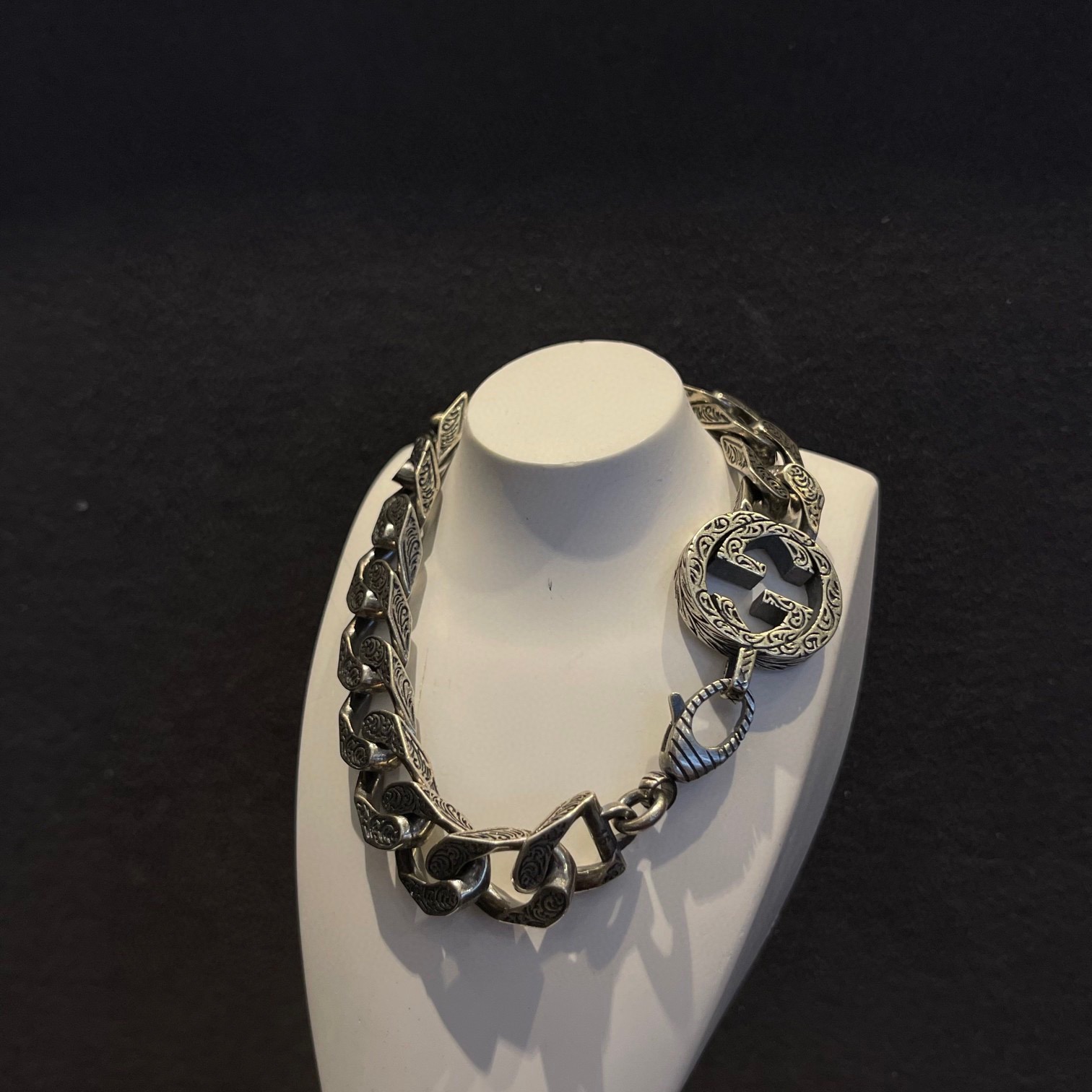 纯银材质 复古做旧 螺纹雕花 双G互扣 厚重质感 时尚单品
