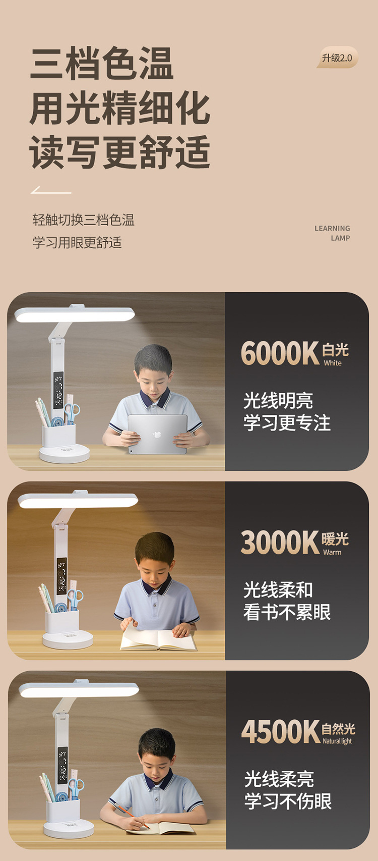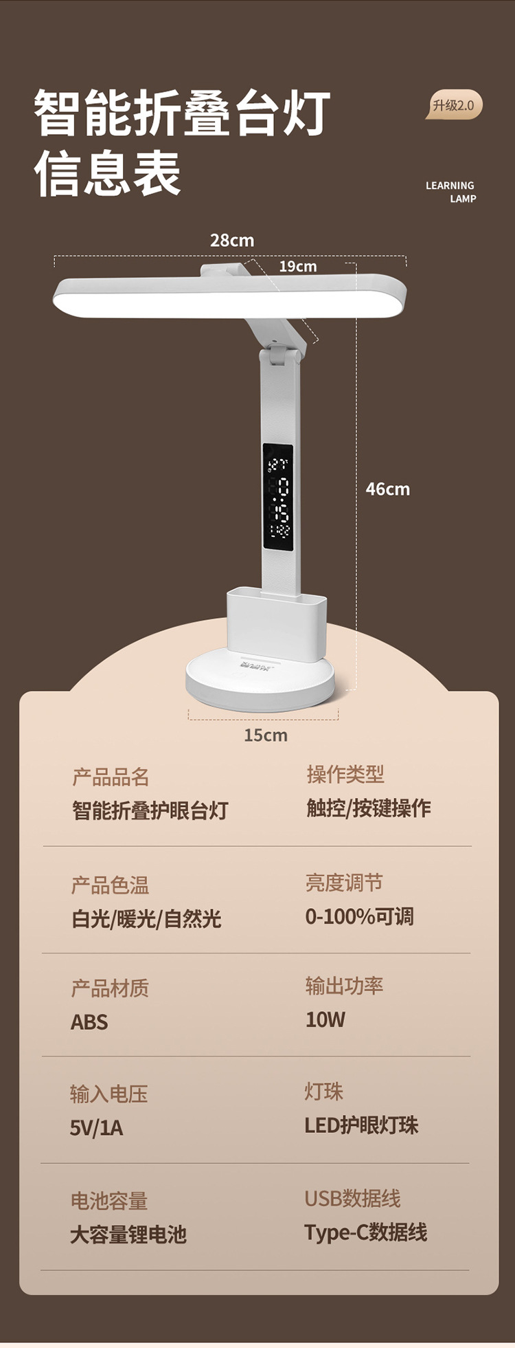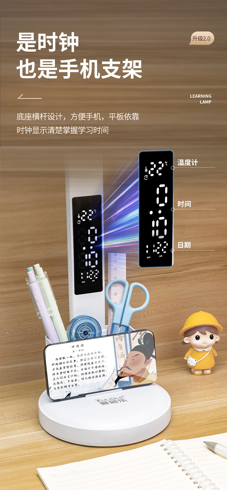 【3600超长续航!AAA级健康照明】智能充电灯,守护眼睛;时间规划,智慧捕捉。LED屏幕显示,随时知晓;学生宿舍、卧室床头,一个都不能少!
