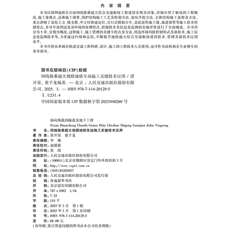 书名:四线换乘超大规模地铁车站施工关键技术应用