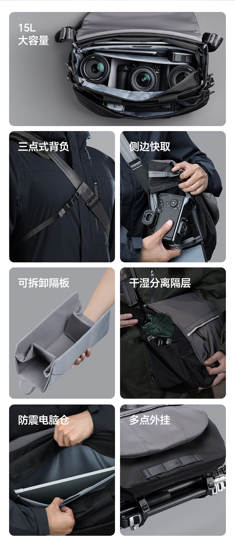 Ulanzi优篮子 TE88休闲摄影单肩包微单反相机通用外拍15L大容量斜挎包适用索尼富士佳能数码保护防泼水收纳包
