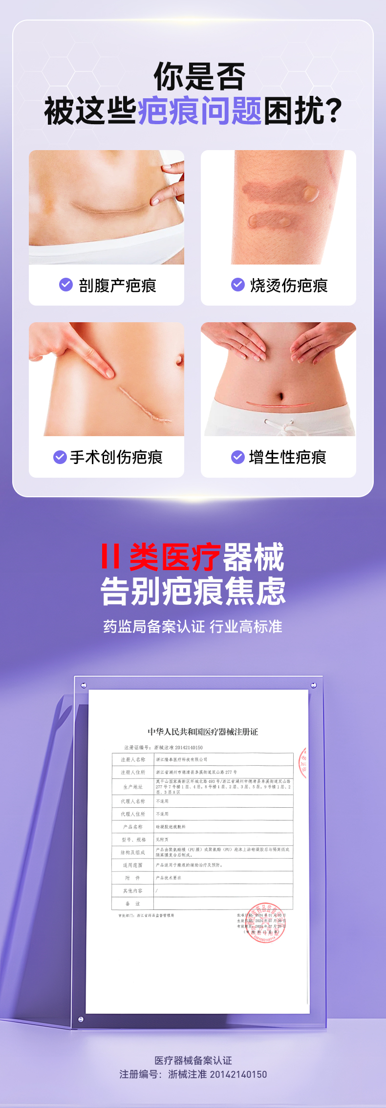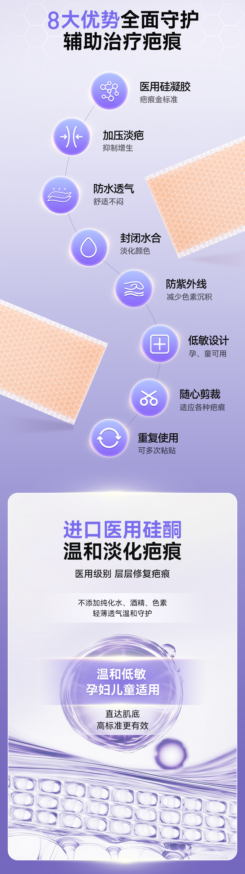 鱼跃祛疤修复硅凝胶疤痕敷料剖腹产疤痕贴