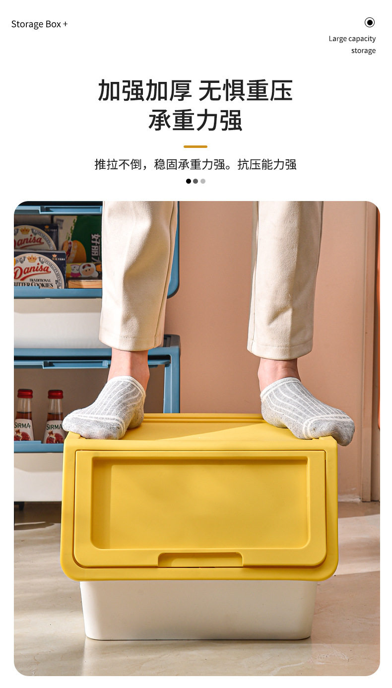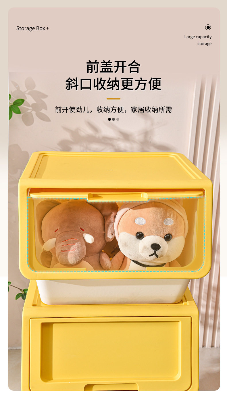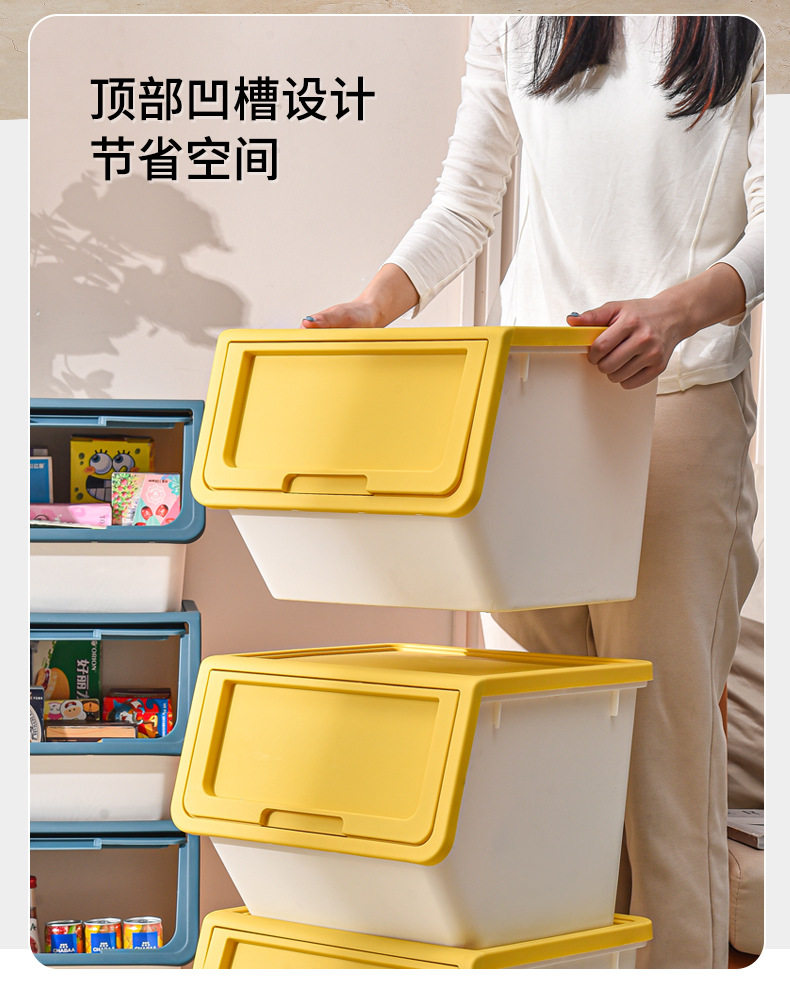 家用儿童零食翻盖整理箱大号加厚杂物收纳盒玩具前开式折叠收纳箱