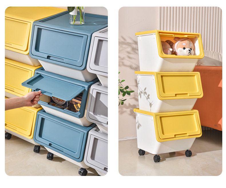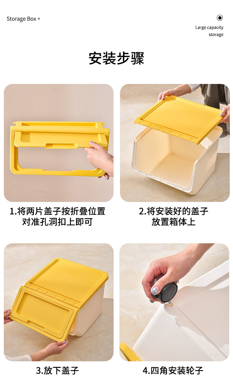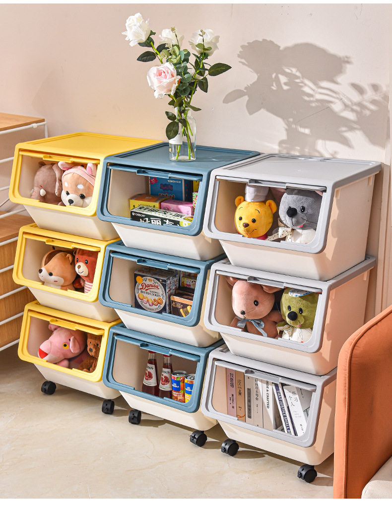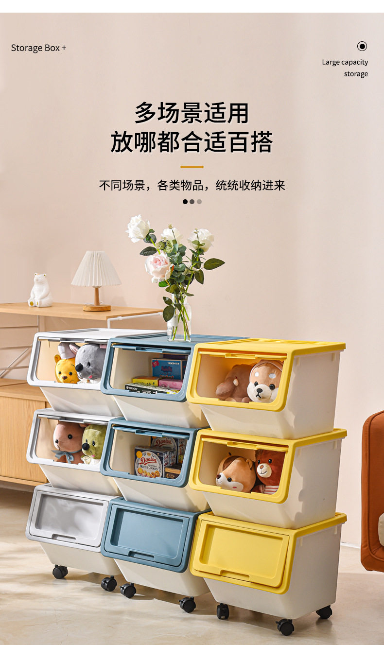 家用儿童零食翻盖整理箱大号加厚杂物收纳盒玩具前开式折叠收纳箱