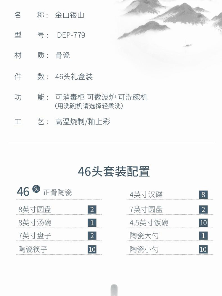 德铂Debo 金山银山陶瓷碗筷套装 (厨房用具) DEP-779