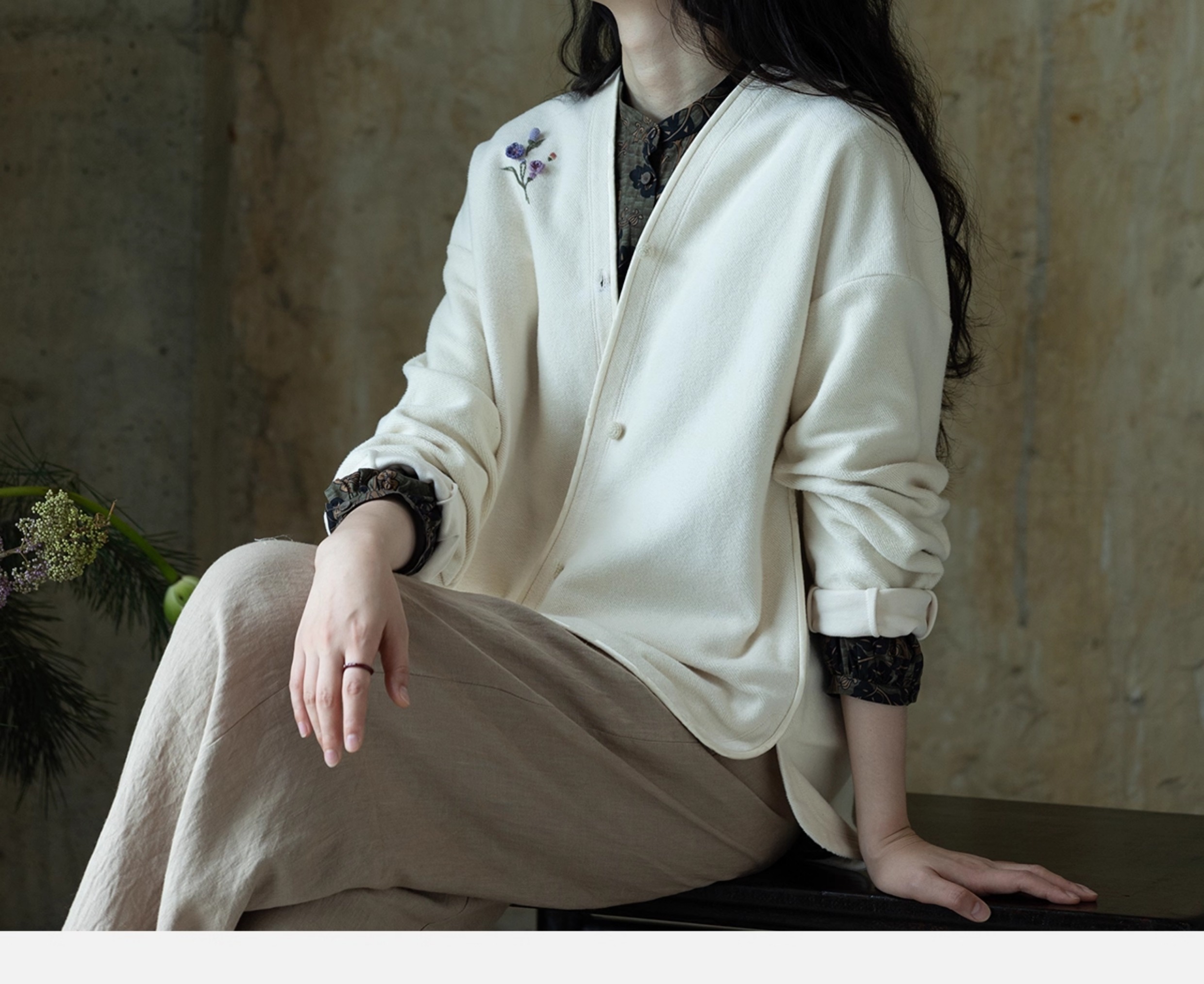 牧衣游原创 手工刺绣32支新疆棉短外套新款舒适柔软百搭开衫 知少