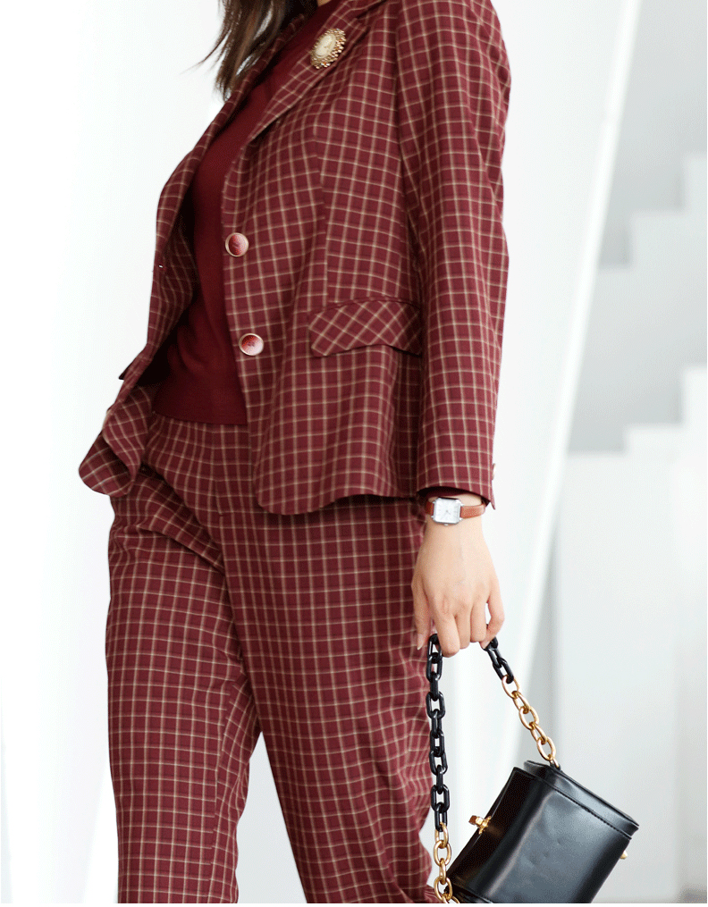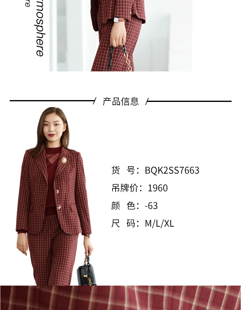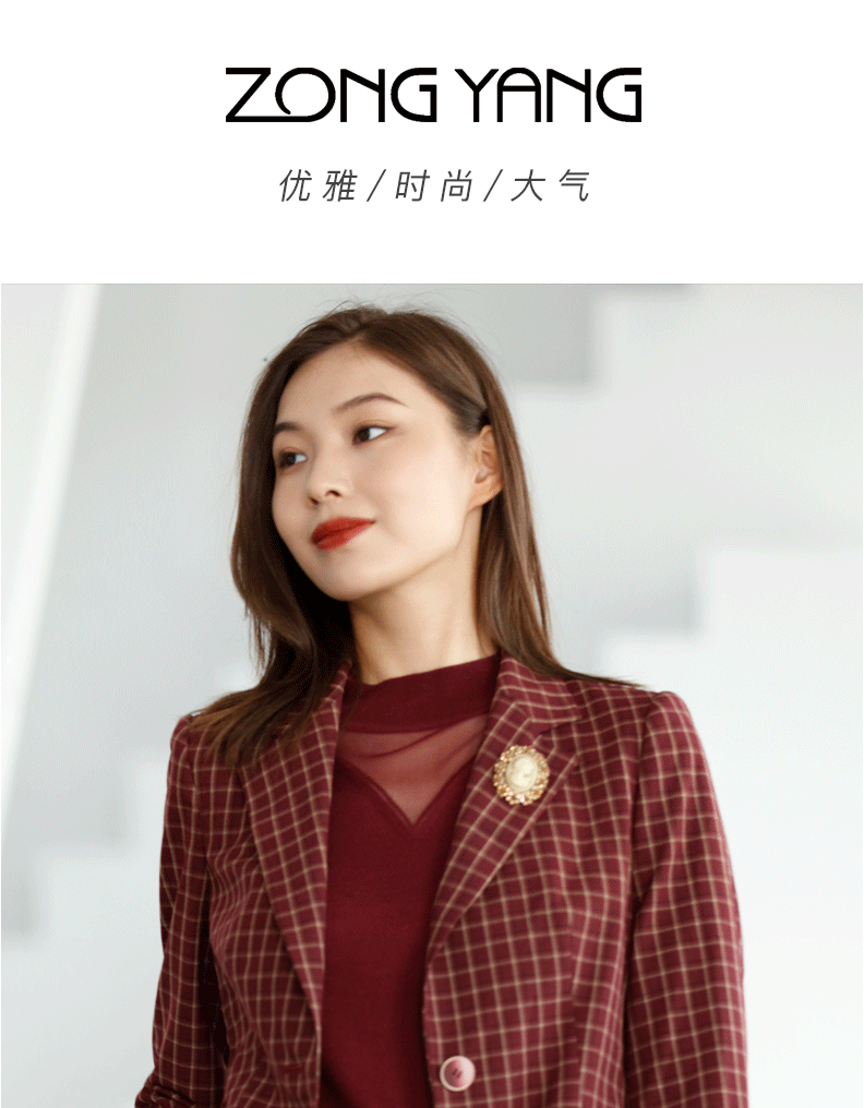 宗洋zongyang女装2021秋季上衣外套格子上衣西服BQK2SS7663-63