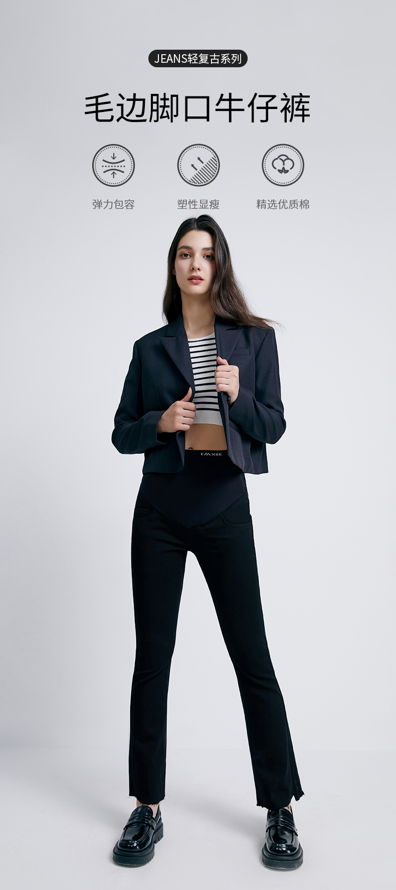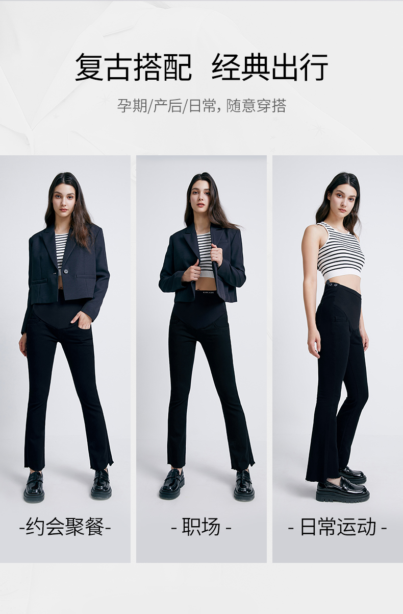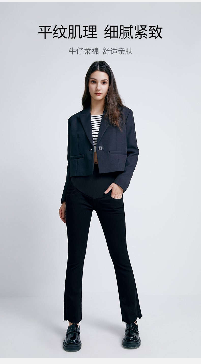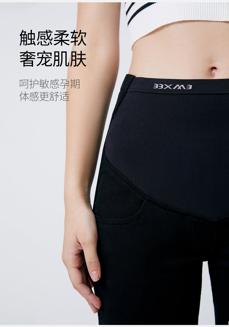 嫚熙孕妇牛仔裤休闲外穿秋季直筒裤怀孕期托腹大码喇叭裤