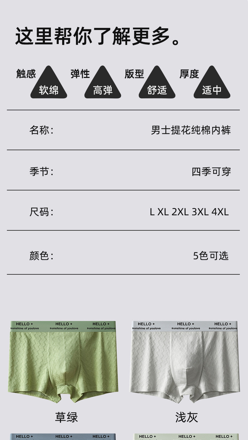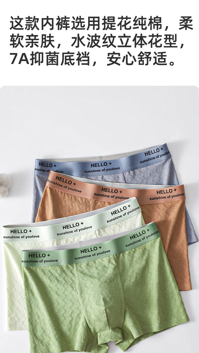 工厂直销男士内裤男纯棉批发大码石墨烯抗菌平角裤男款四角裤代发
