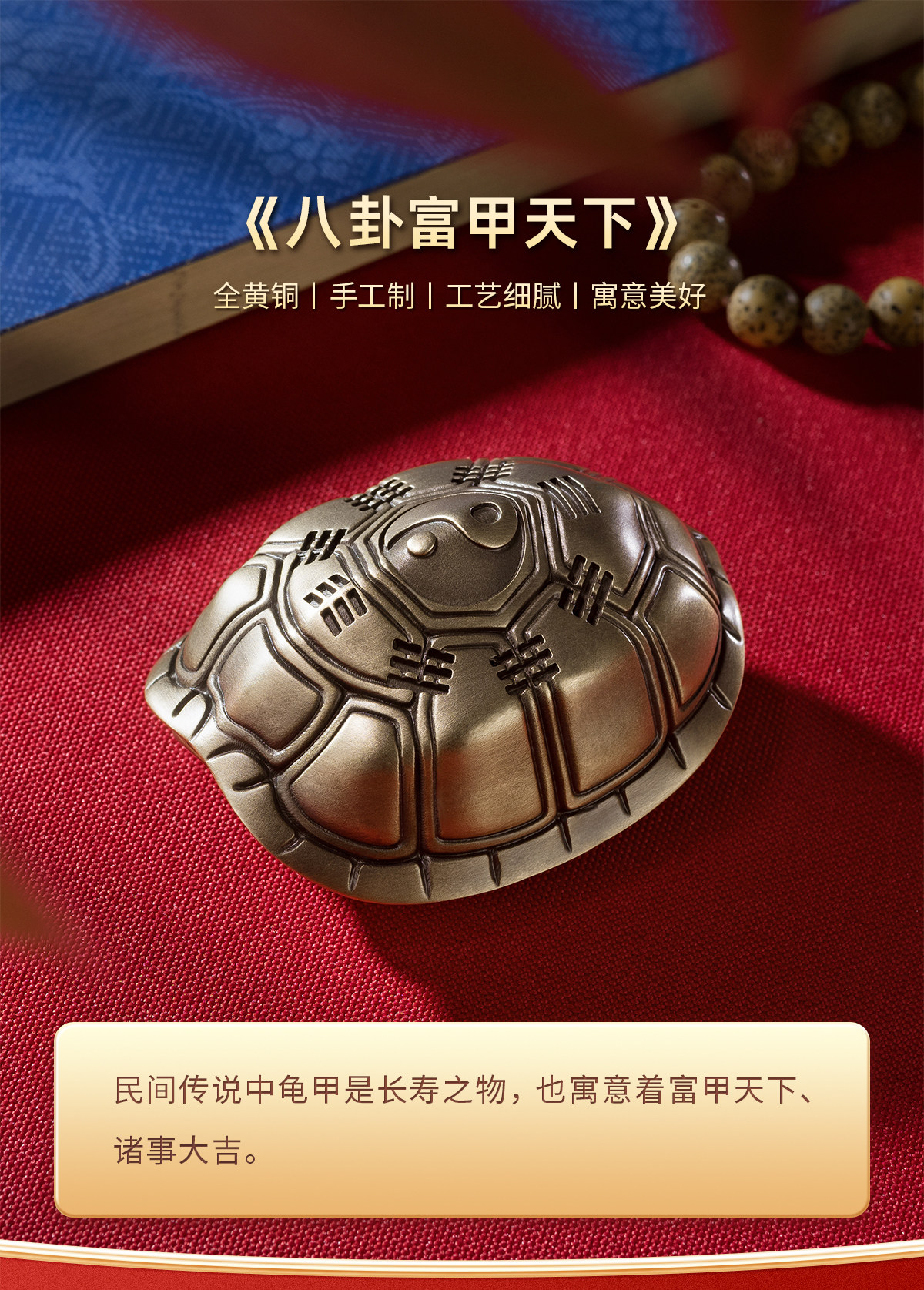 铜师傅《八卦富甲天下》客厅龟壳铜摆件 家居装饰把玩手把件
