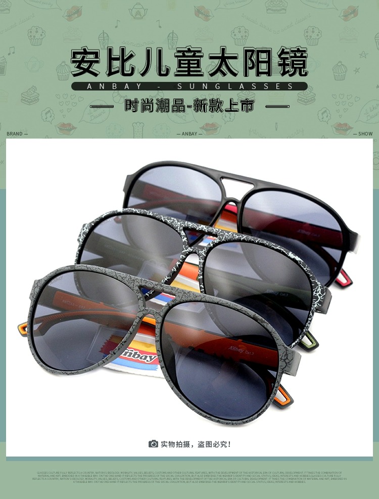 安比儿童蛤蟆镜宝宝墨镜男童防紫外线小孩眼镜潮男童太阳镜A21243