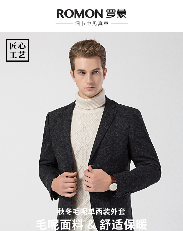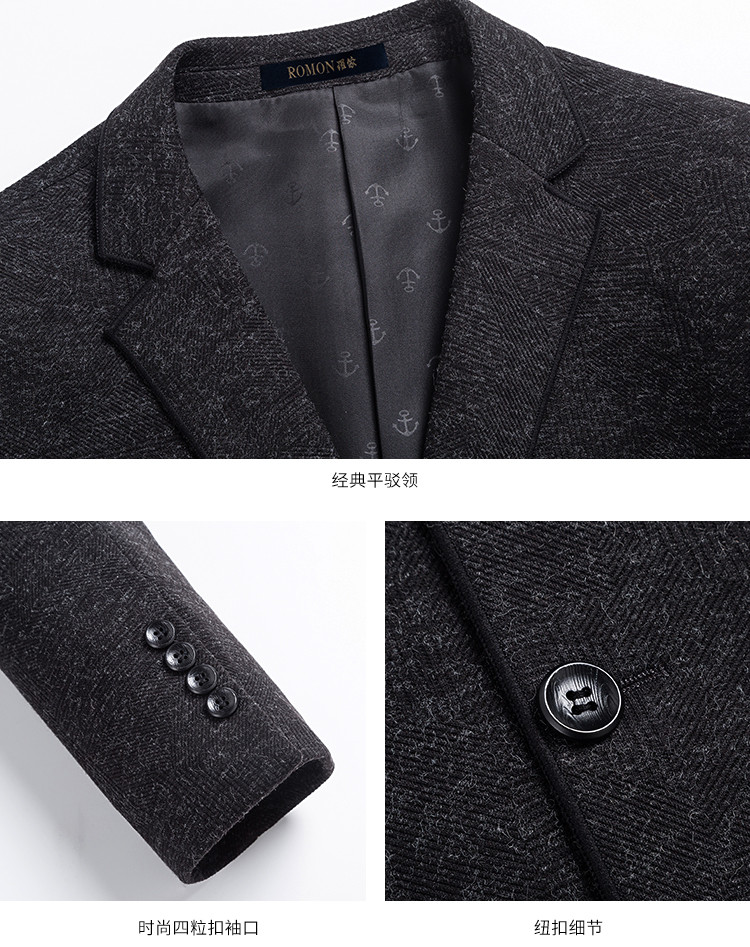 罗蒙秋冬男装小西装外套男士商务休闲磨毛单西服爸爸装西服外套