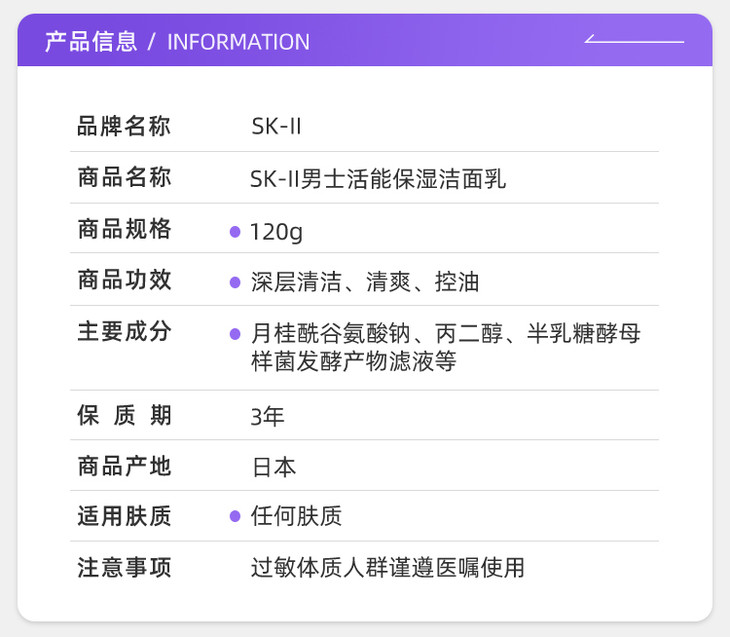 SK-II男士洁面 洗面奶男士焕活保湿洁面霜120g QM