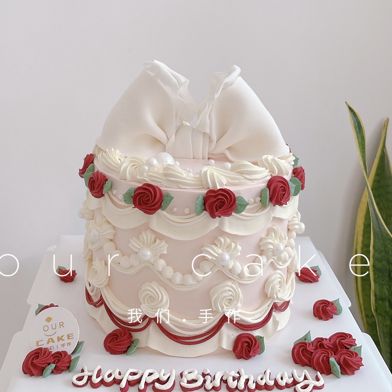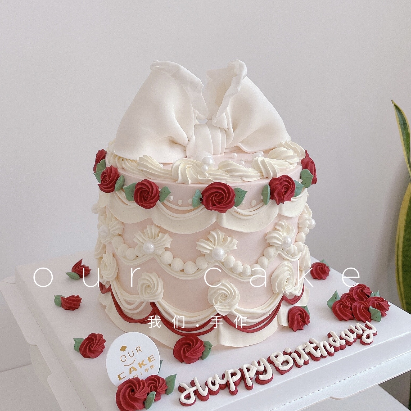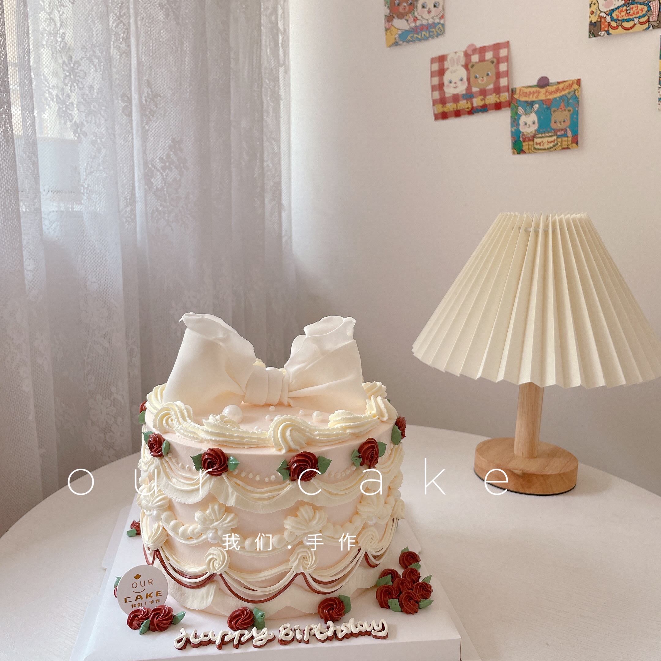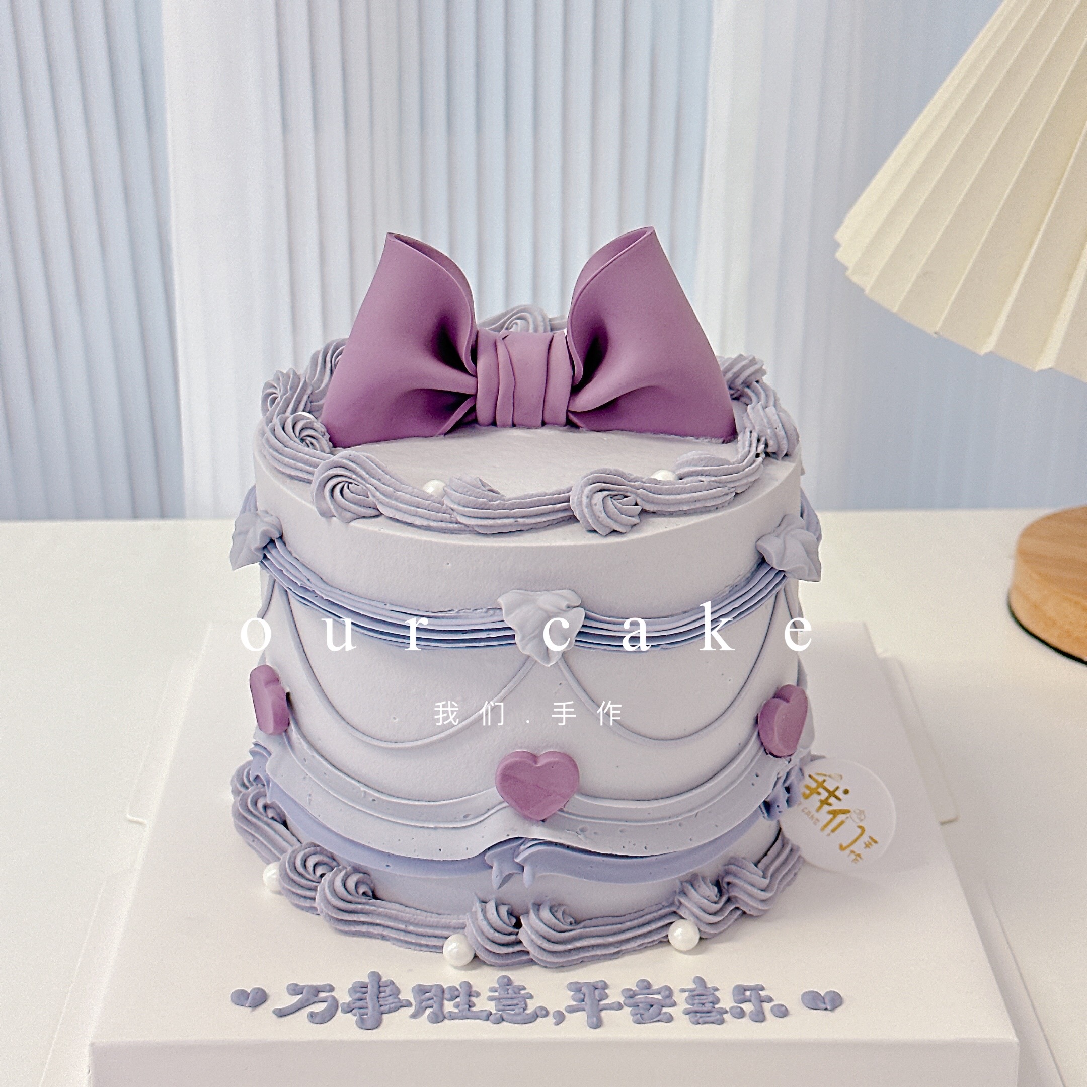 复古紫色/白色蝴蝶结蛋糕-低糖处理无添加