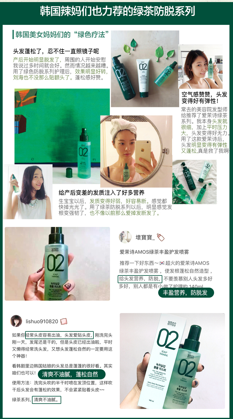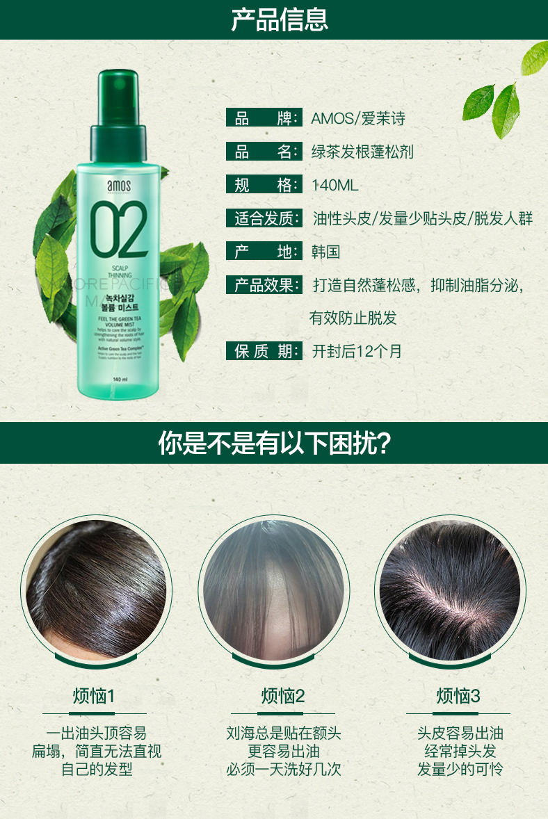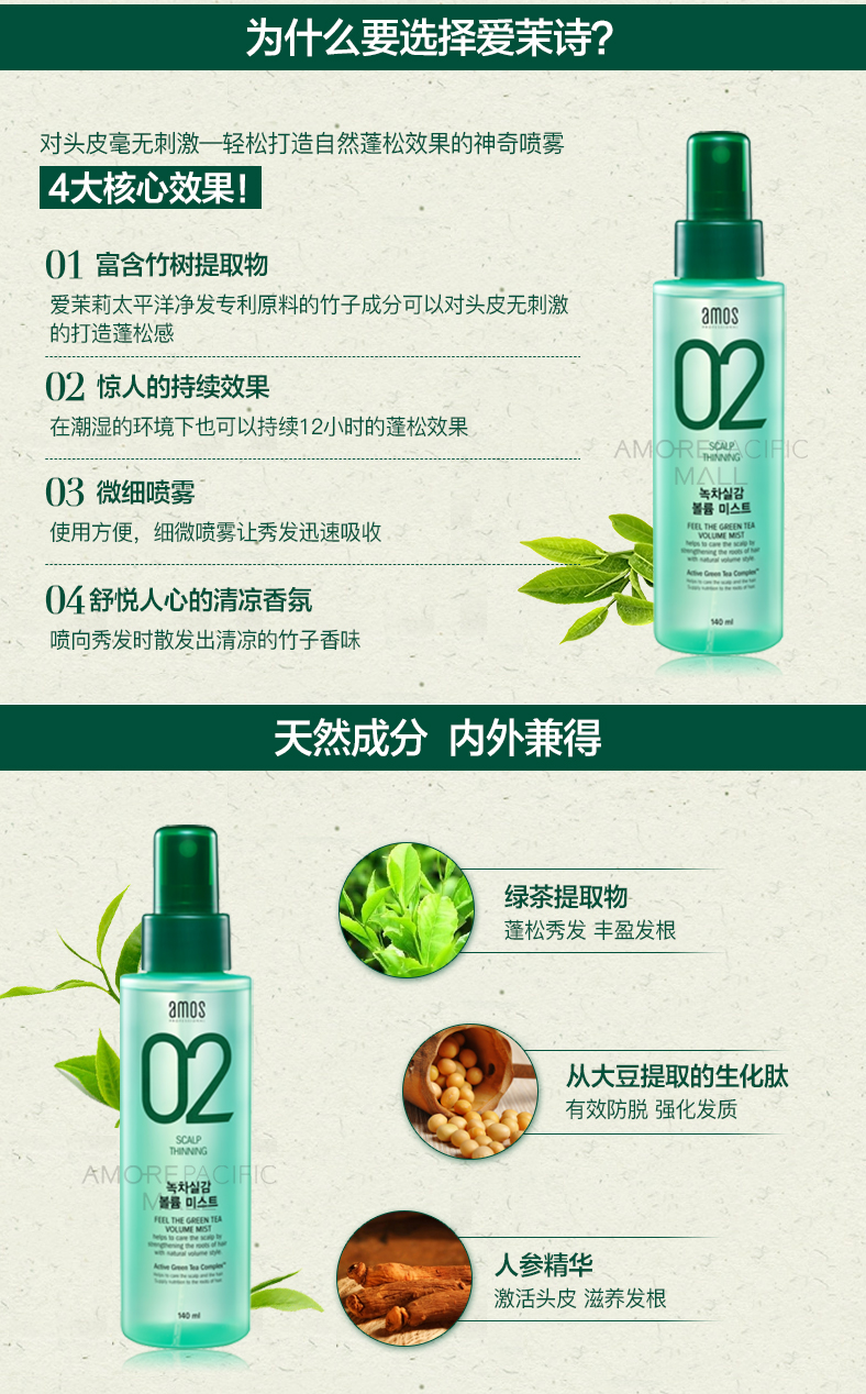 爱茉莉 02绿茶发根膨松喷雾 140ml 韩国