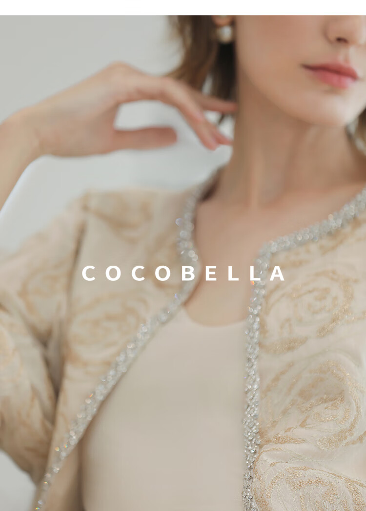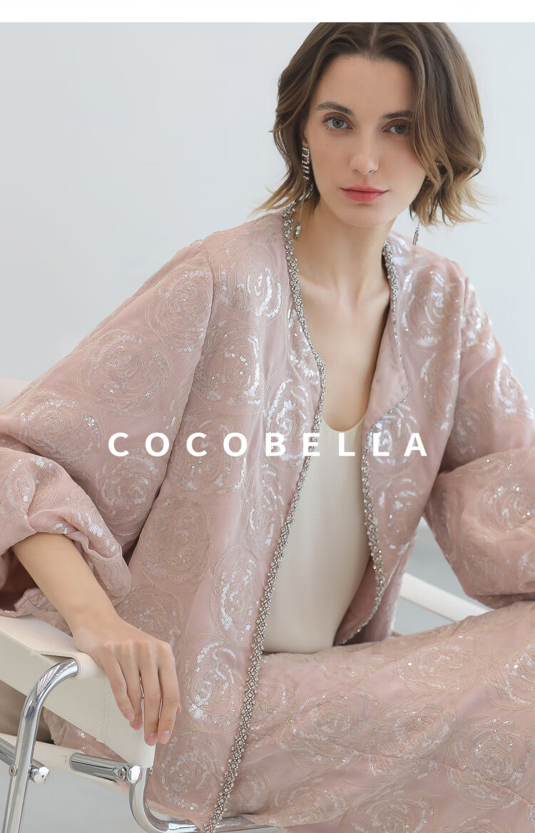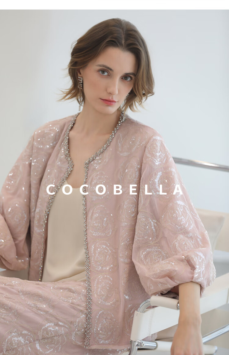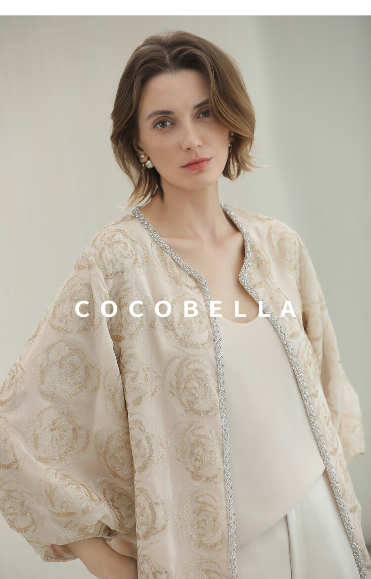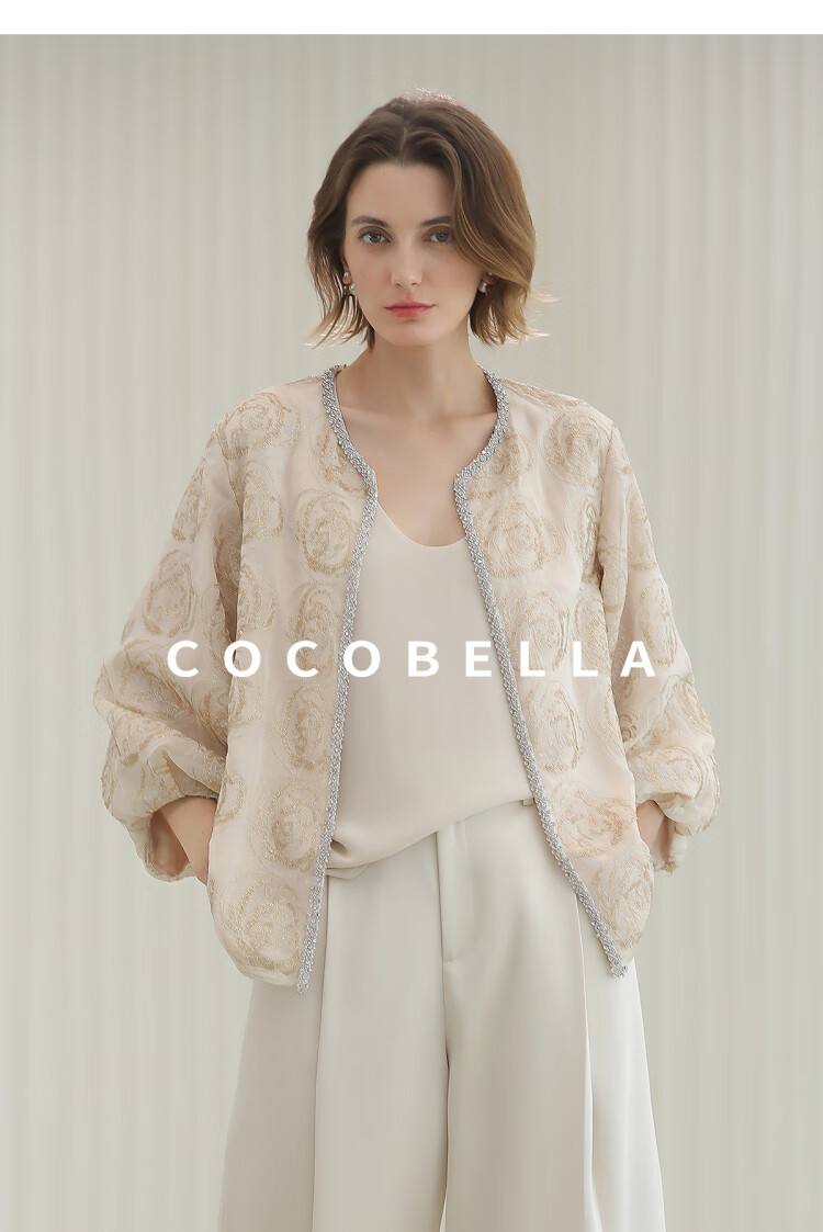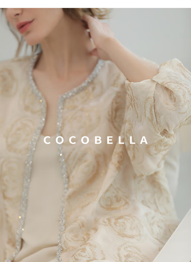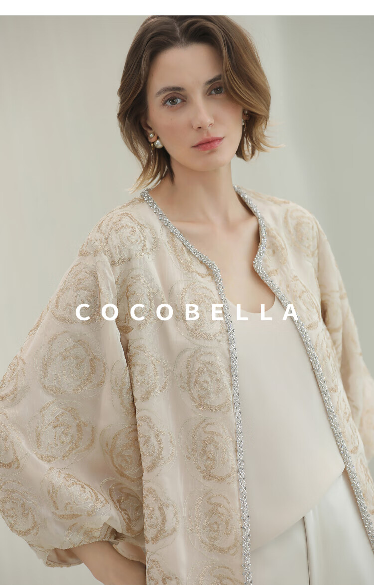 COCOBELLA重工亮片盘绣国风外套女钉珠链条花苞袖上衣SC3021