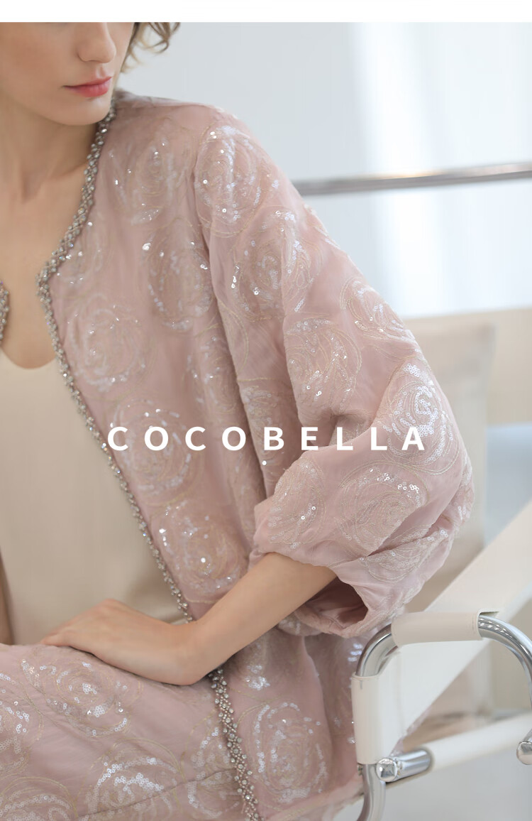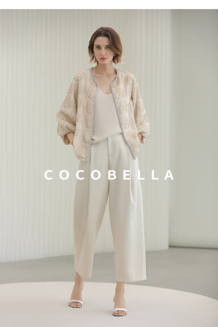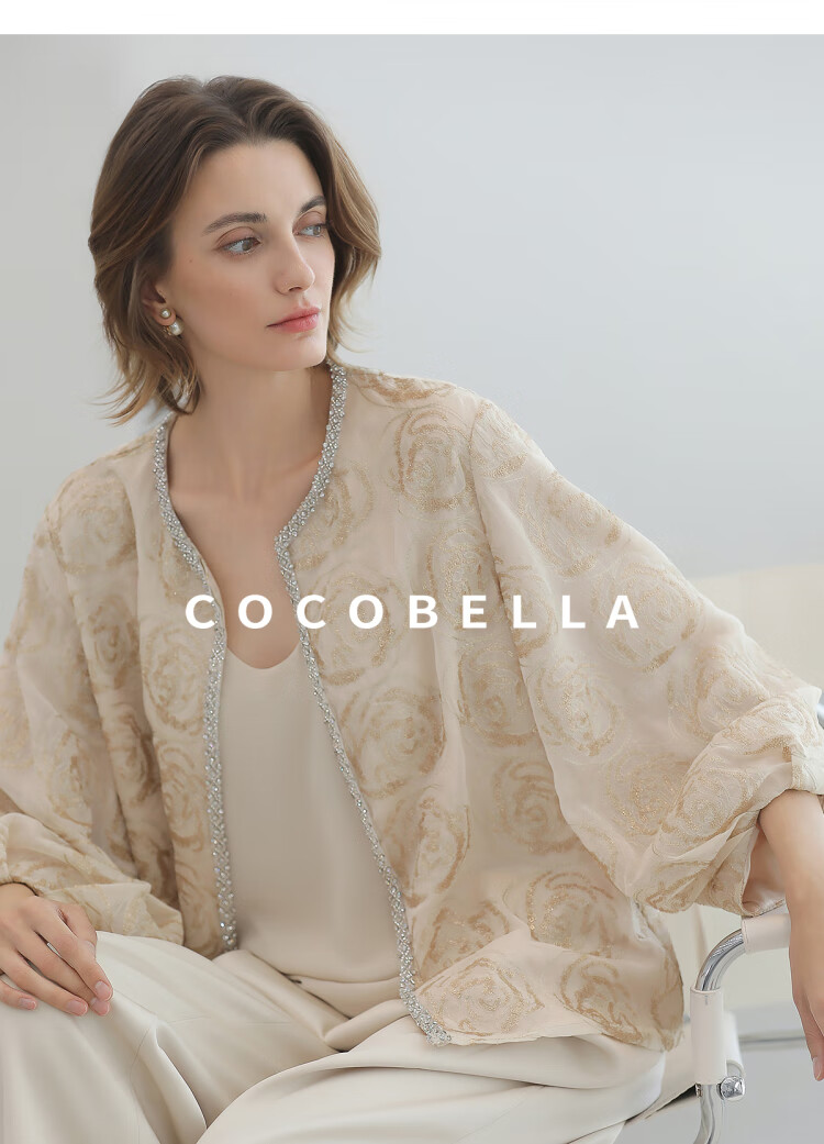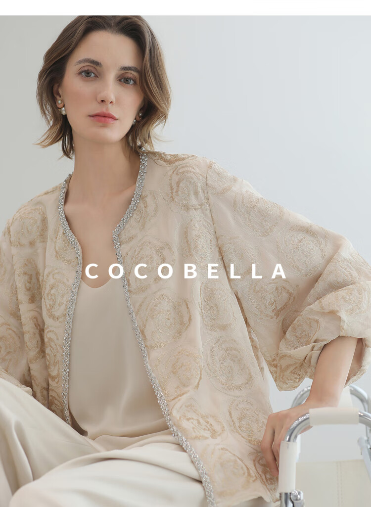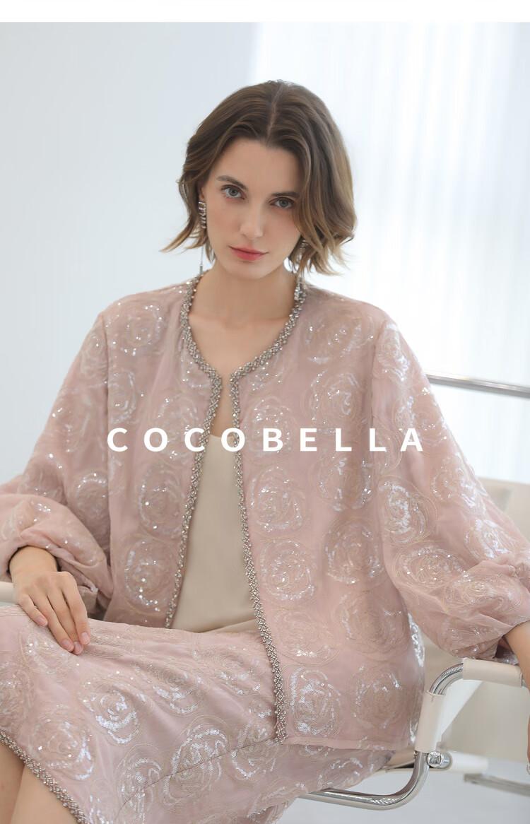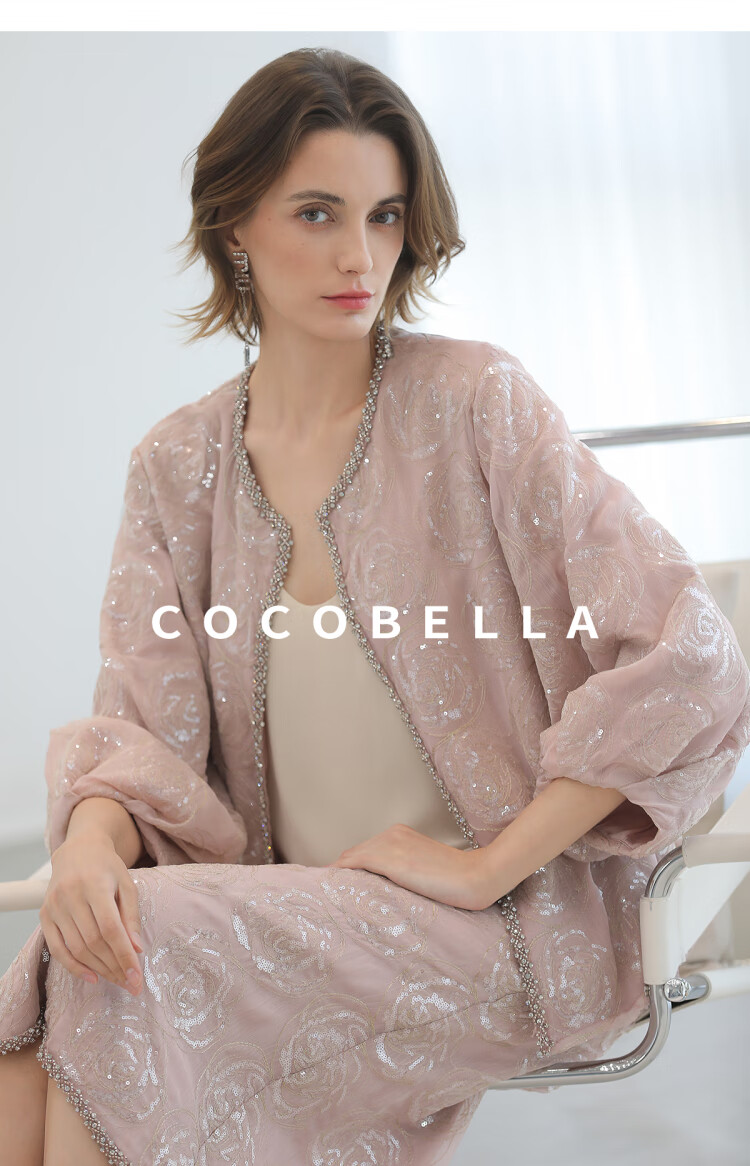 COCOBELLA重工亮片盘绣国风外套女钉珠链条花苞袖上衣SC3021