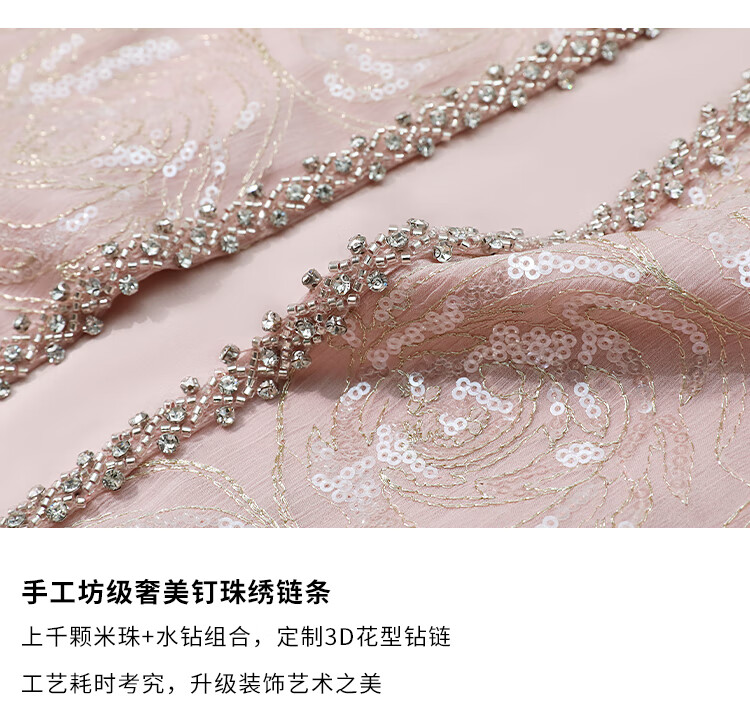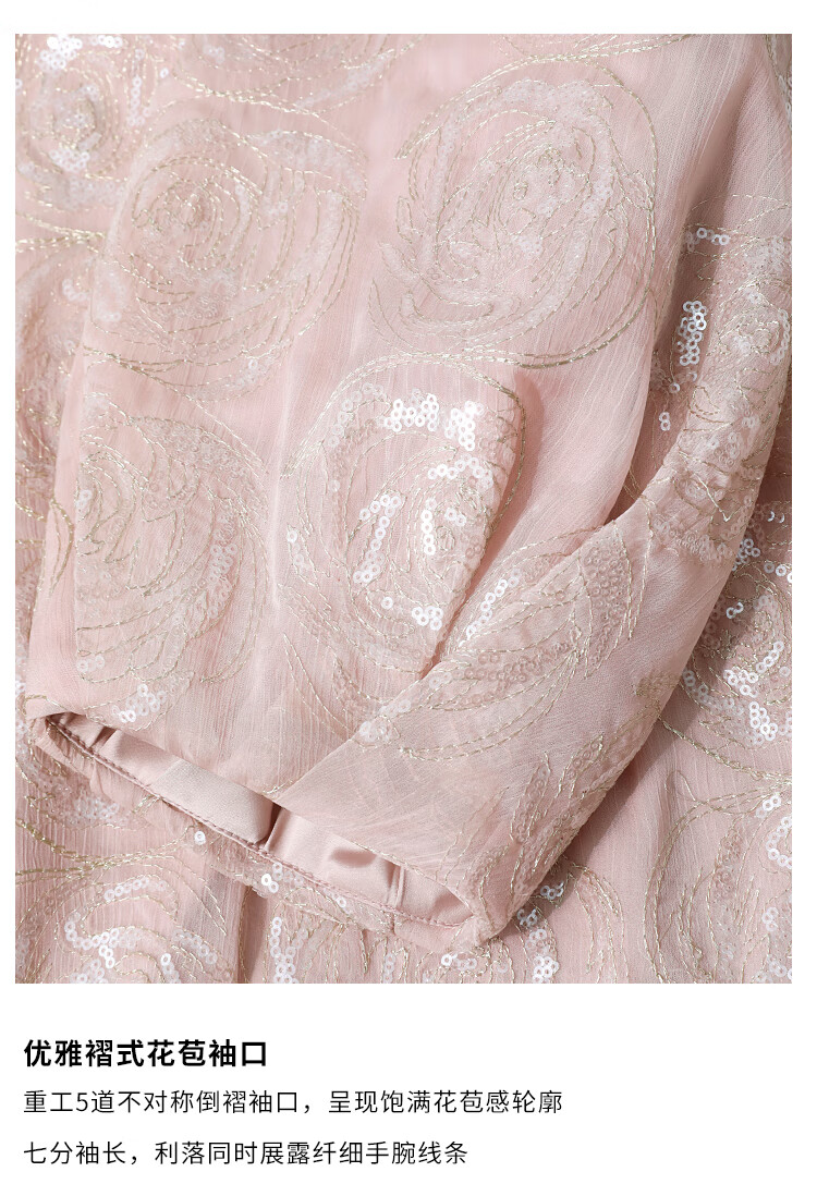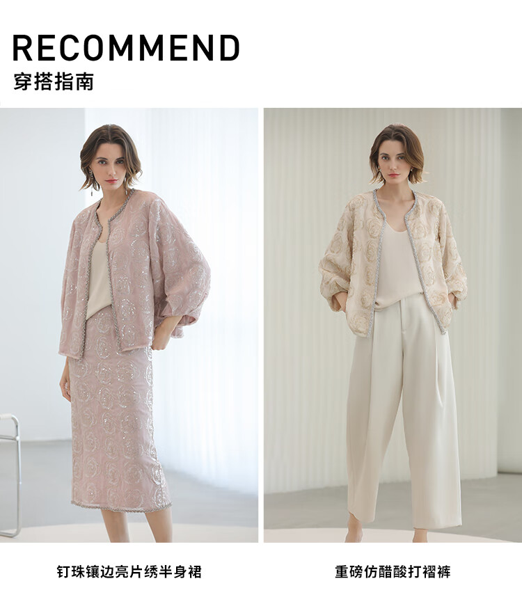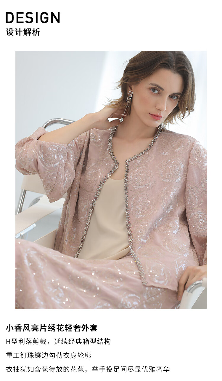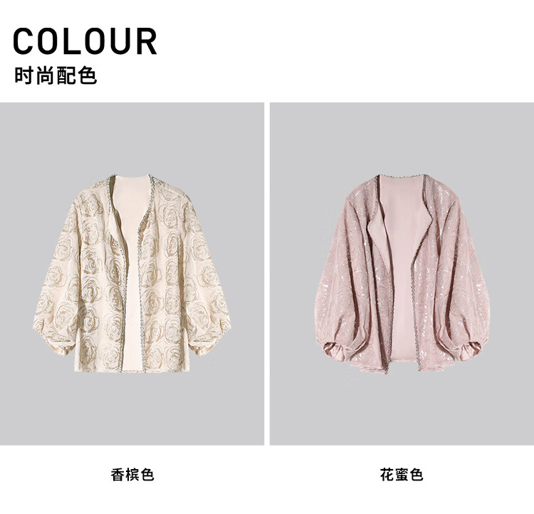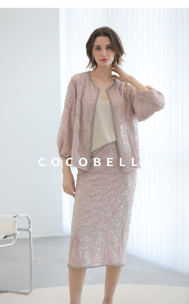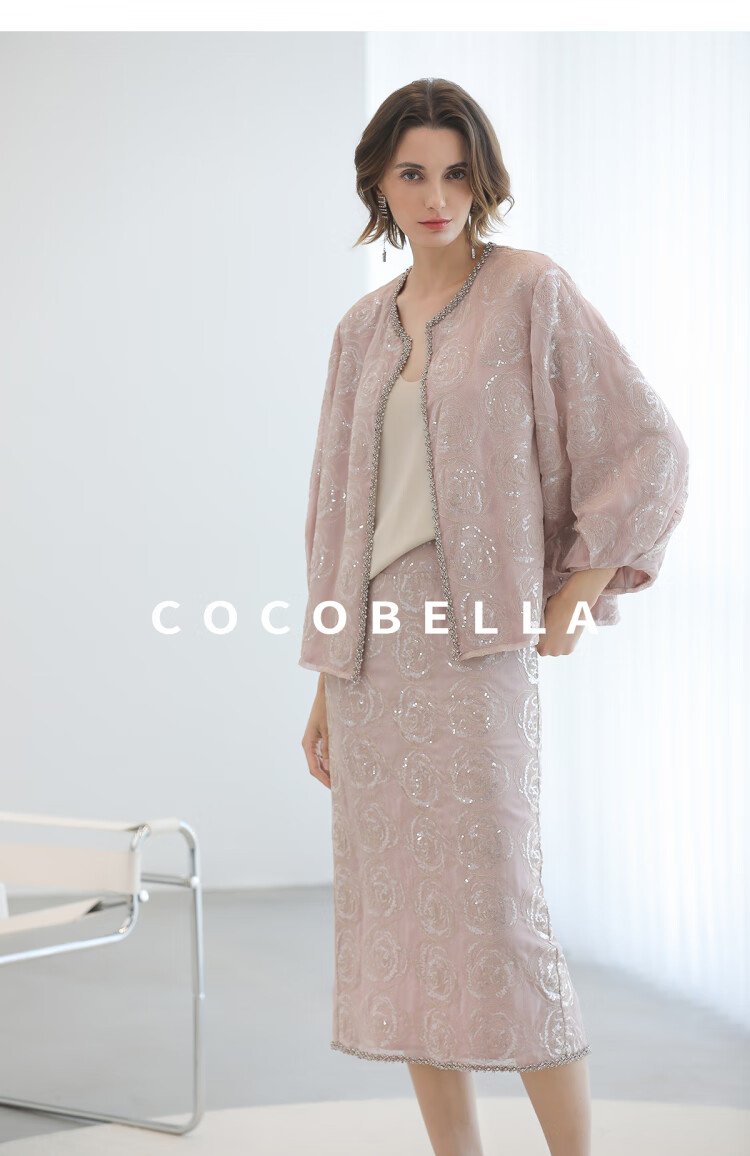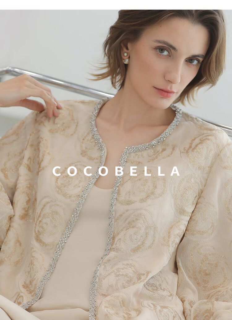 COCOBELLA重工亮片盘绣国风外套女钉珠链条花苞袖上衣SC3021