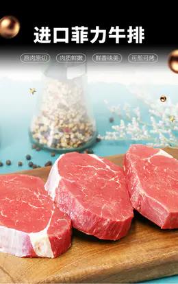 花间肥【5-7片厚切 1.6斤装】巴西进口菲力牛排800克 原肉原切 鲜嫩多汁 可煎可烤