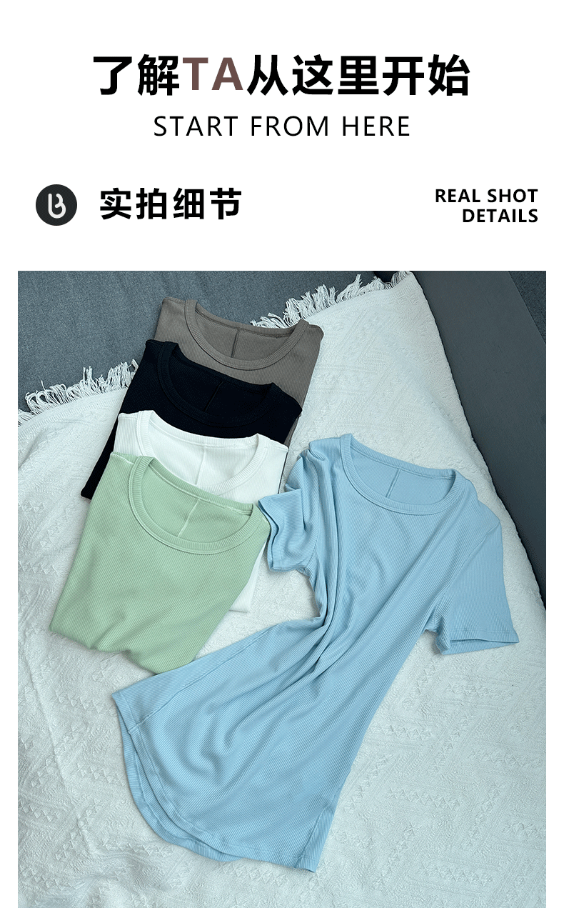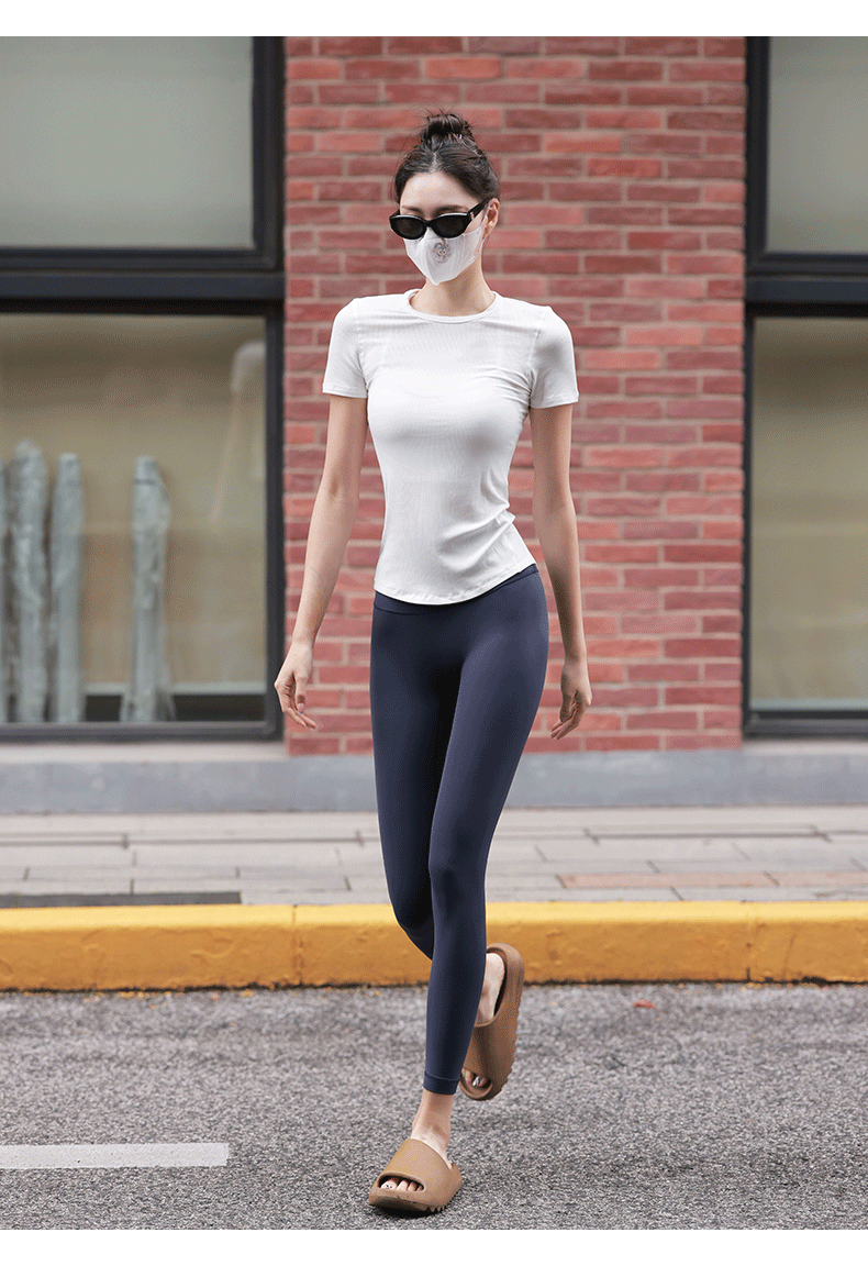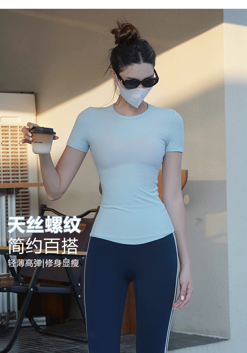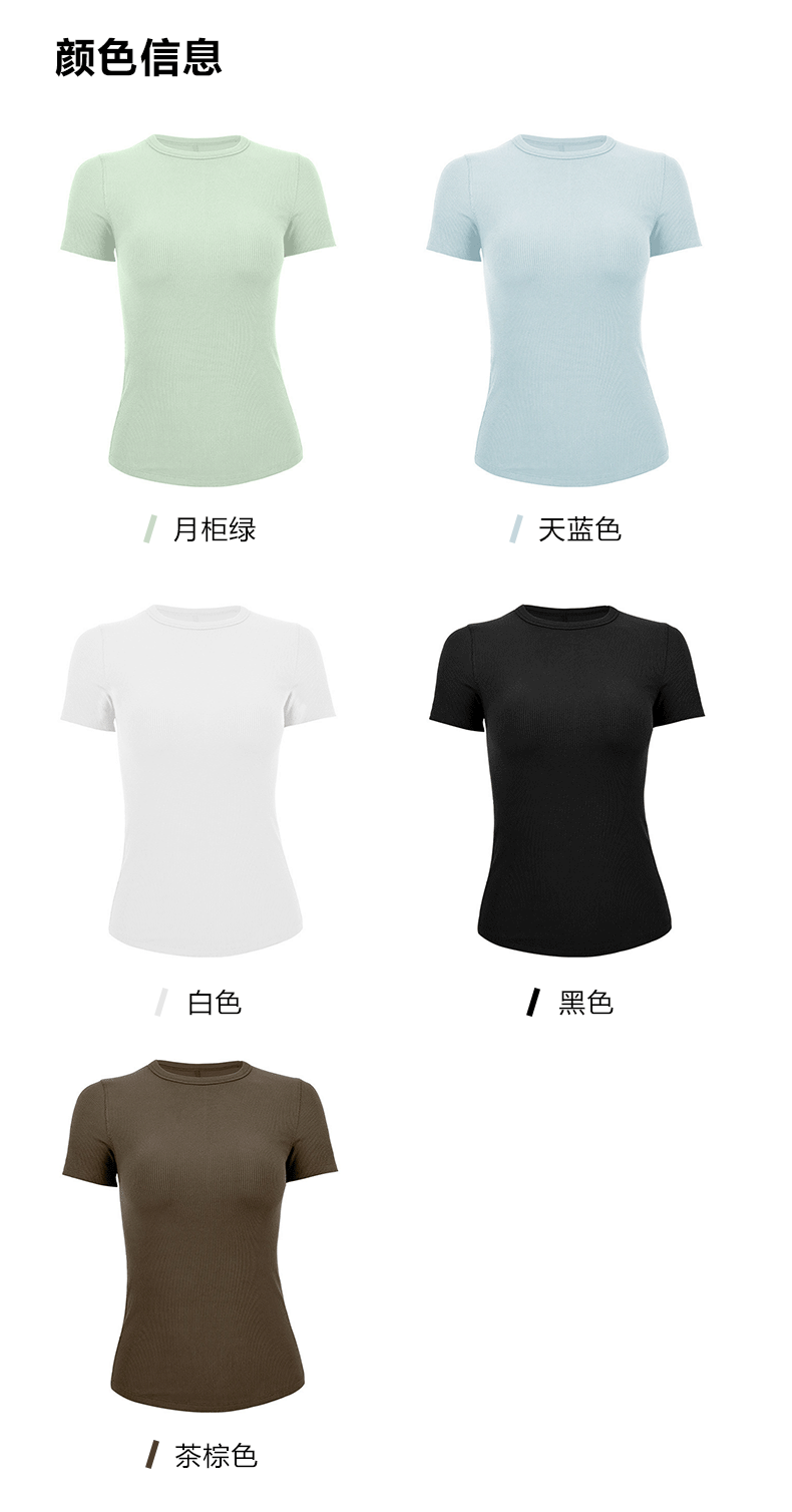 beemen 天丝莱赛尔运动T恤 面料软弹微微凉 修身显瘦 螺纹圆领瑜伽服高弹透气瑜伽短袖