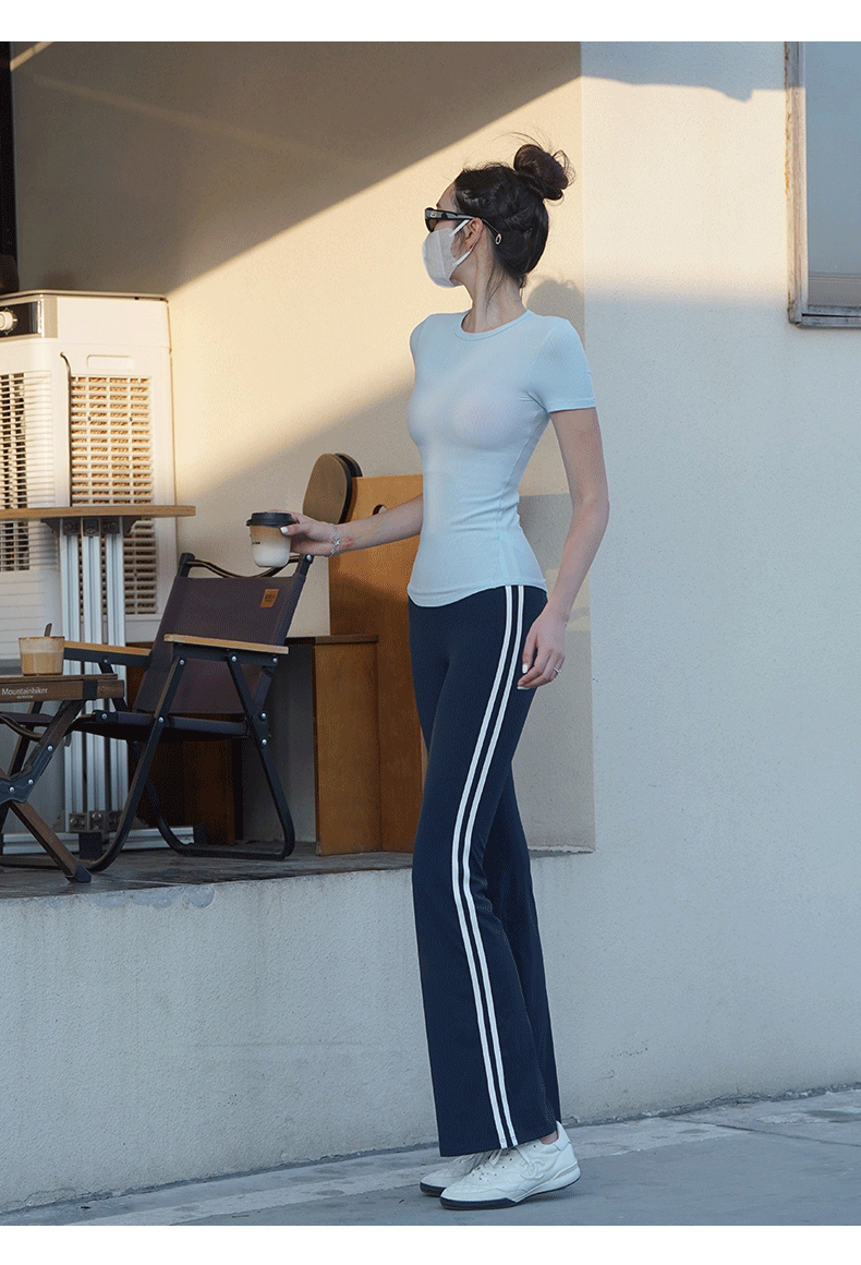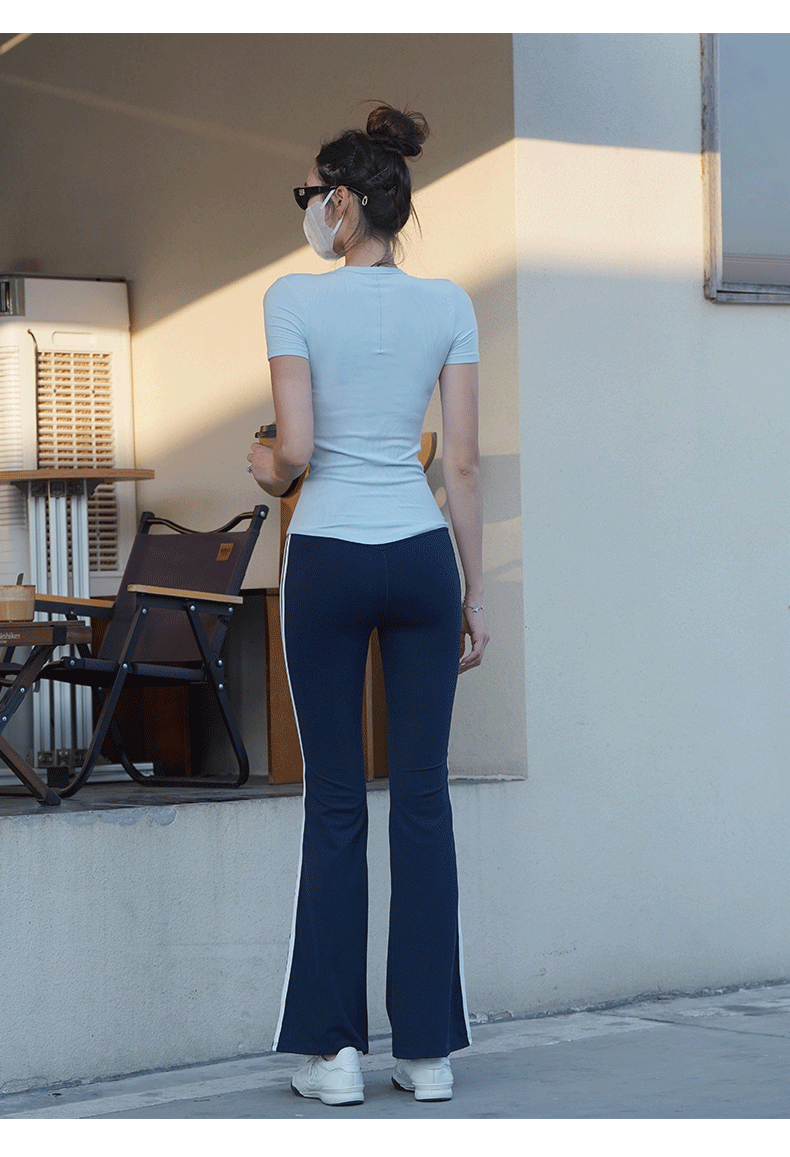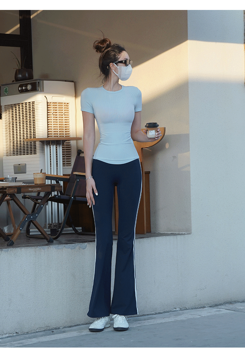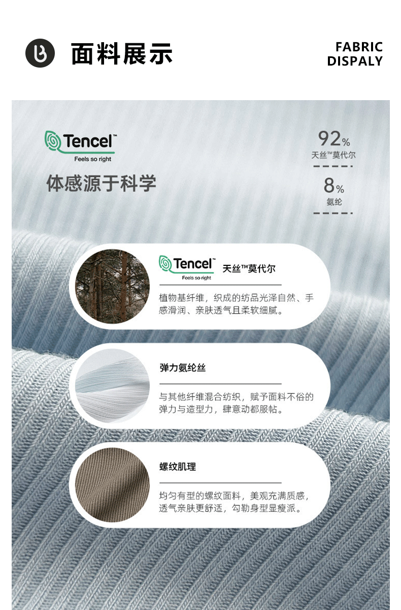 beemen 天丝莱赛尔运动T恤 面料软弹微微凉 修身显瘦 螺纹圆领瑜伽服高弹透气瑜伽短袖