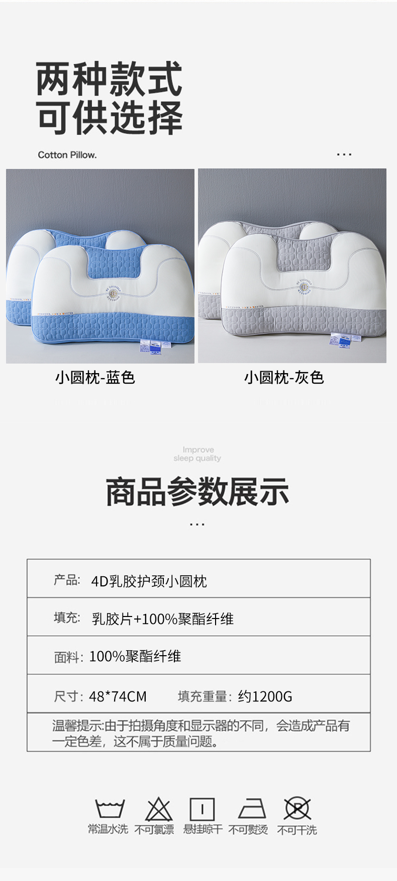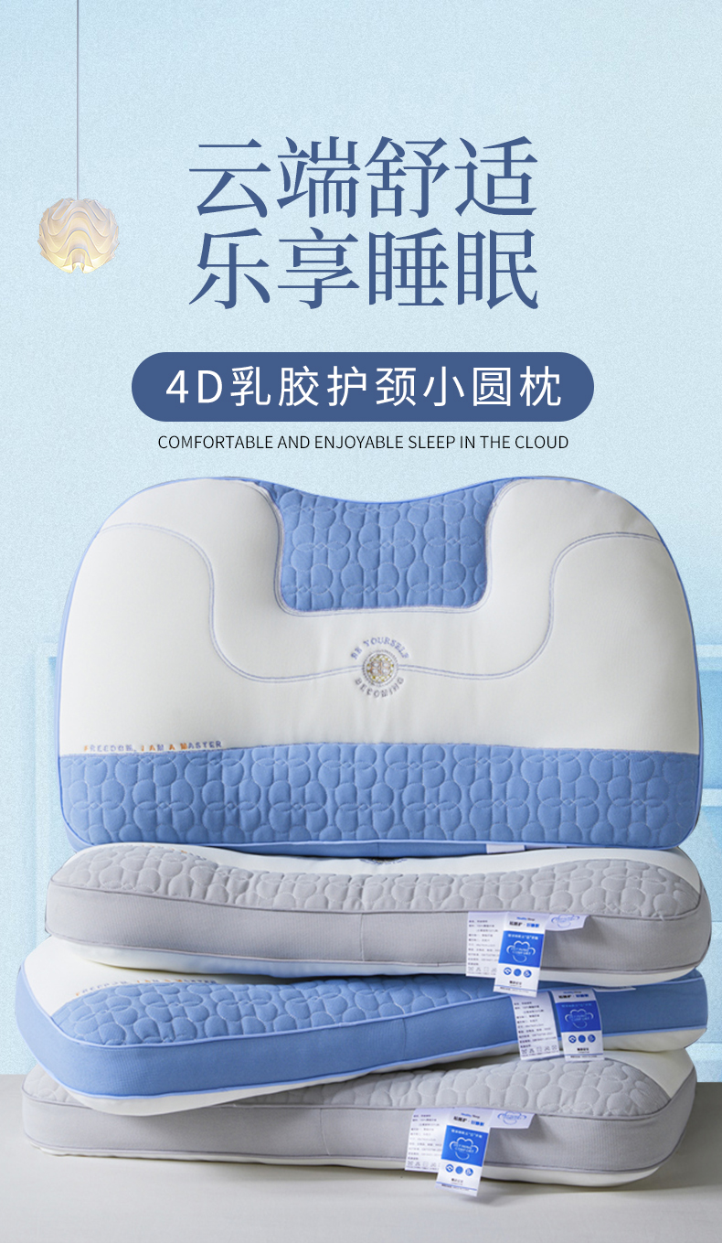 自然醒4D乳胶护颈小圆枕倍护工学枕头护颈椎助睡眠侧睡枕家用成人单人枕芯学生宿舍枕XK