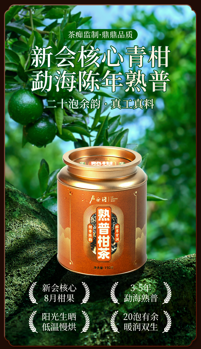 卢正浩熟普柑茶大厂勐海特级熟普新会核心小青柑生晒柑普茶罐装