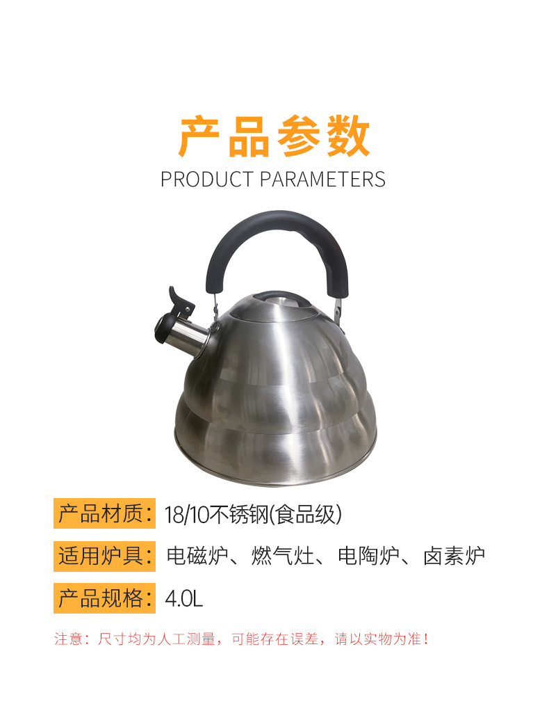 【限量秒杀】亚曼达armada 欧式水壶-4L 18/10不锈钢鸣笛壶