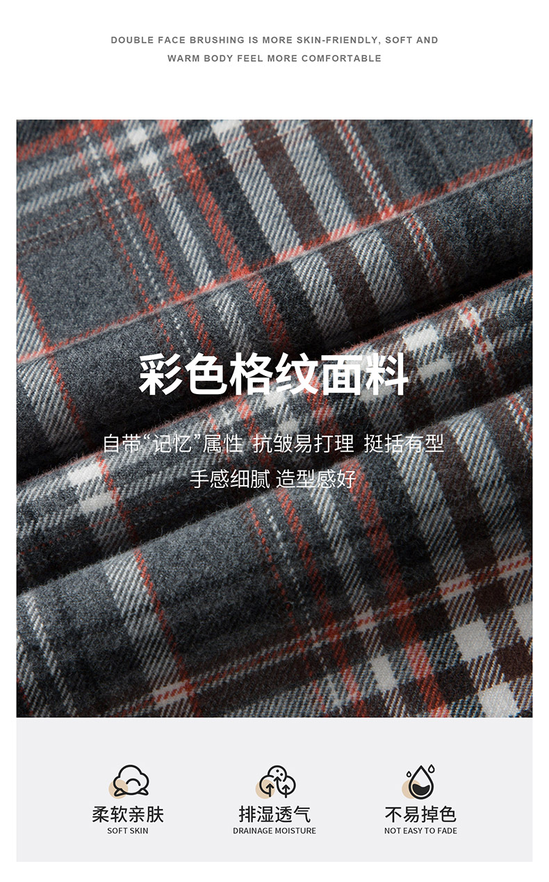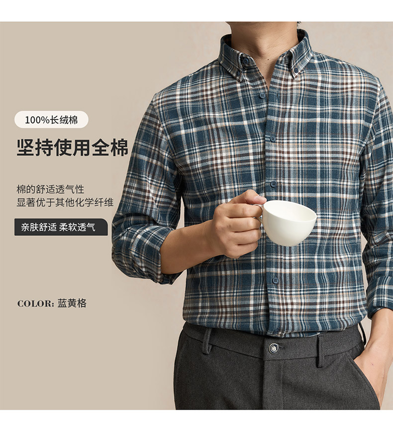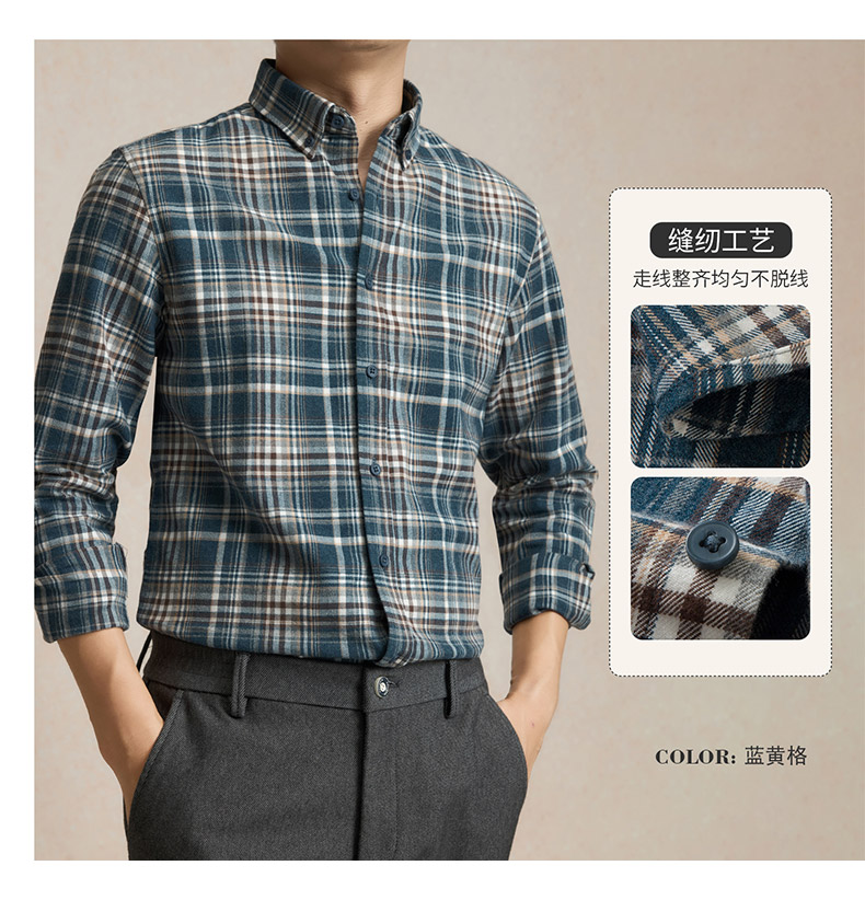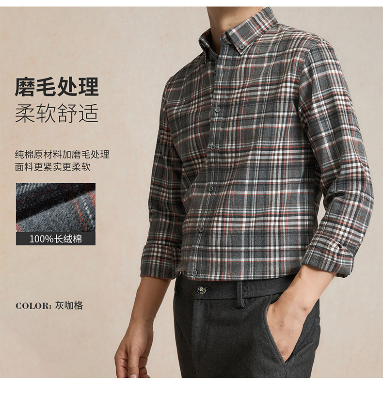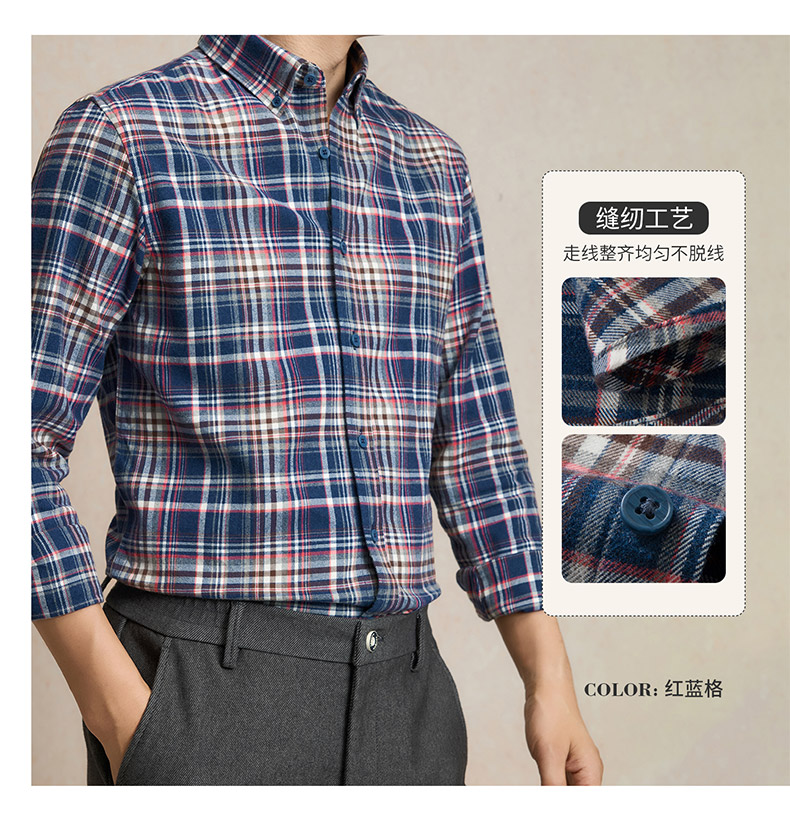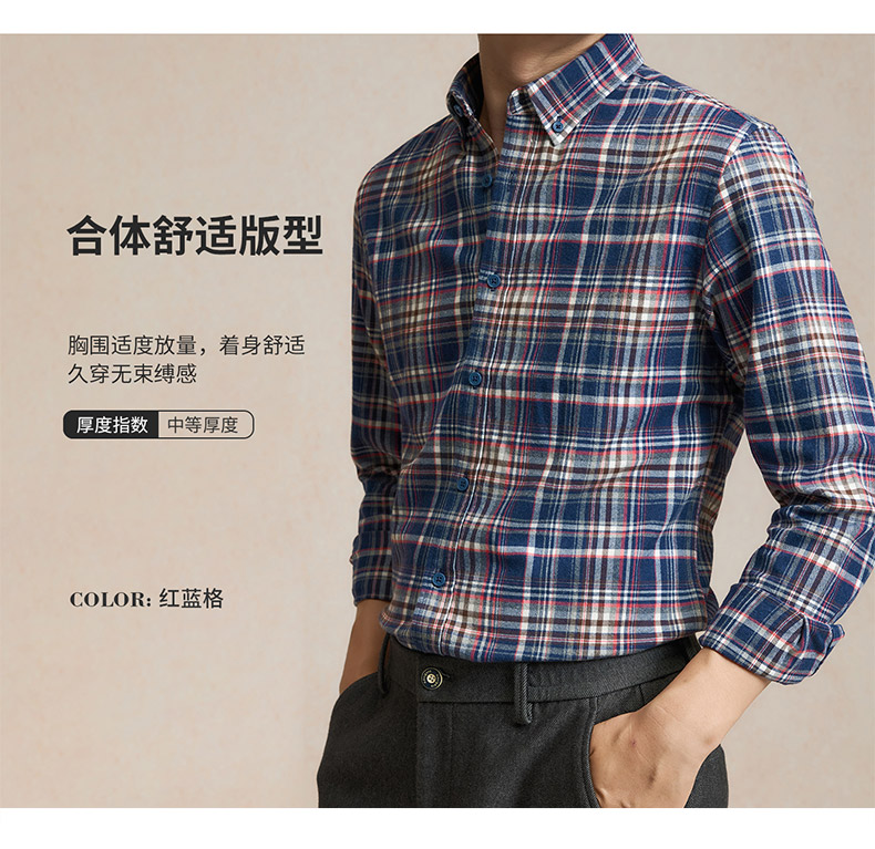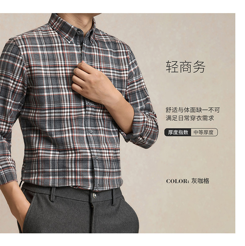 【全棉】罗蒙秋冬格纹衬衫男士厚款保暖舒适柔软通勤百搭长袖衬衣