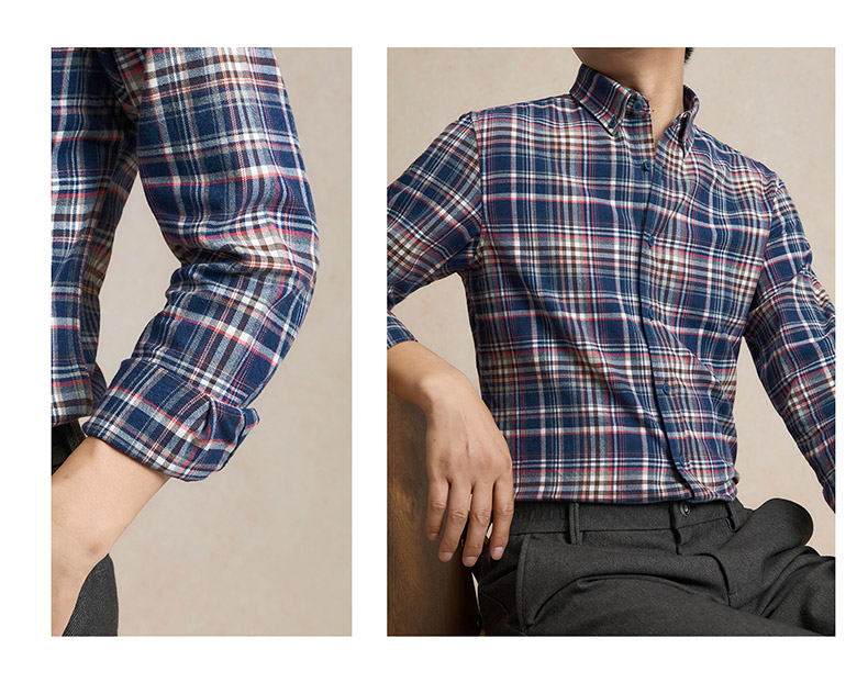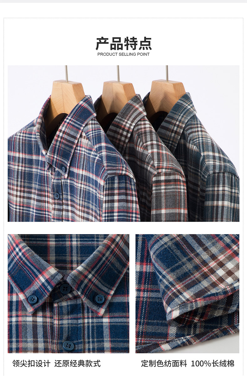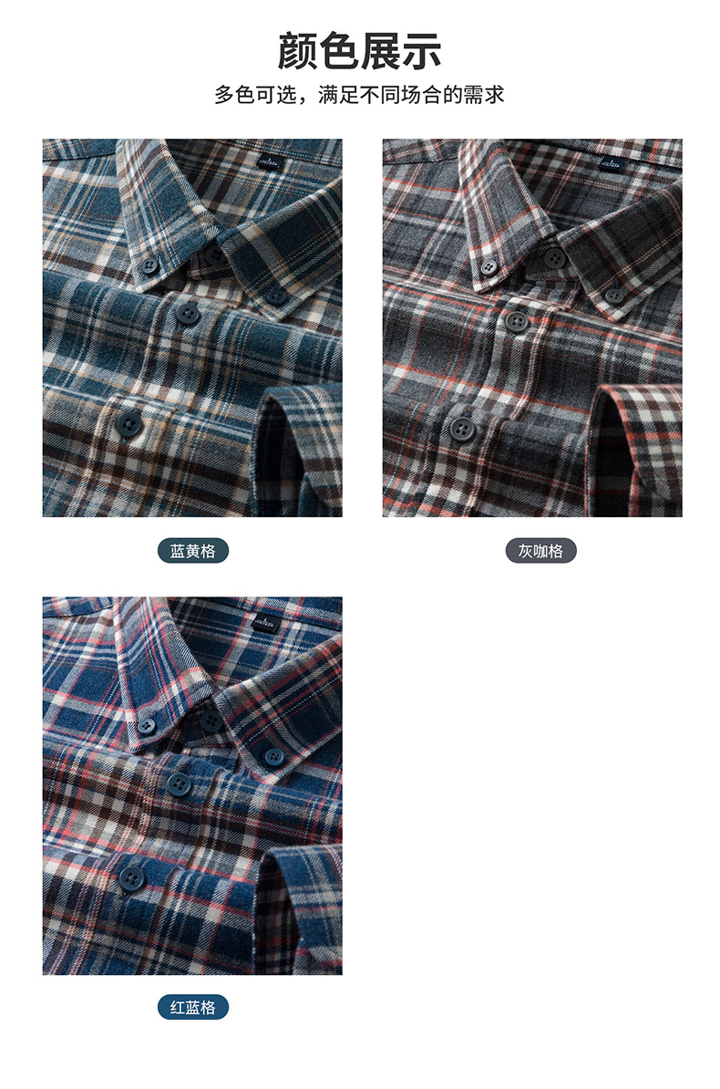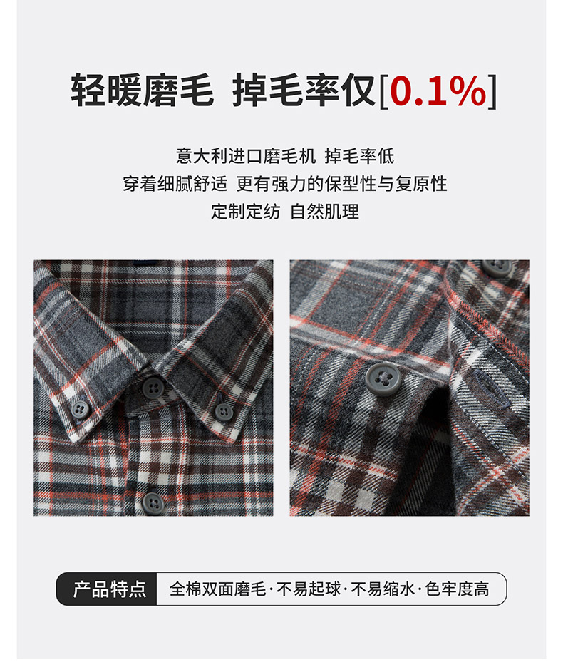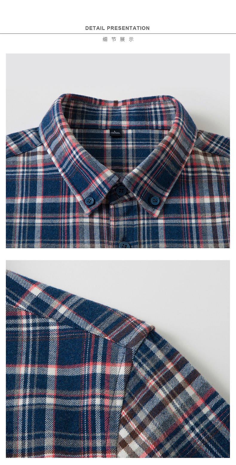 【全棉】罗蒙秋冬格纹衬衫男士厚款保暖舒适柔软通勤百搭长袖衬衣