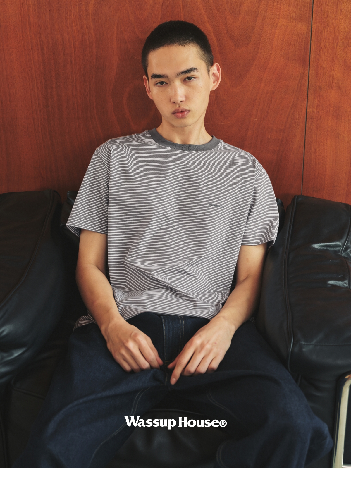WassupHouse条纹正肩短袖T恤