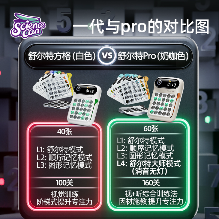 这款科学罐头舒尔特方格,现在推出了Pro版,在原有的基础上对每个环节都进行了升级,下面就把区别告诉大家。