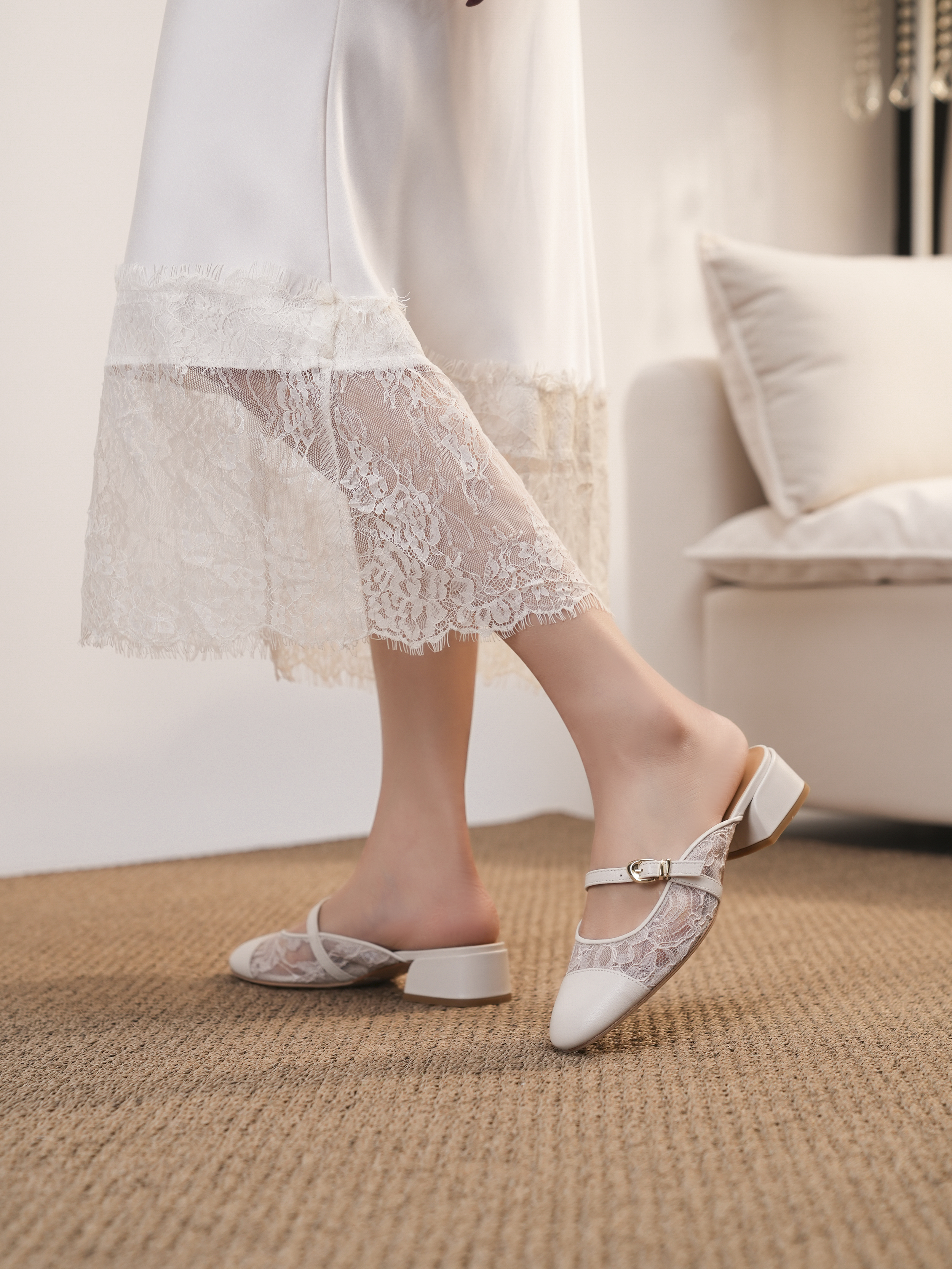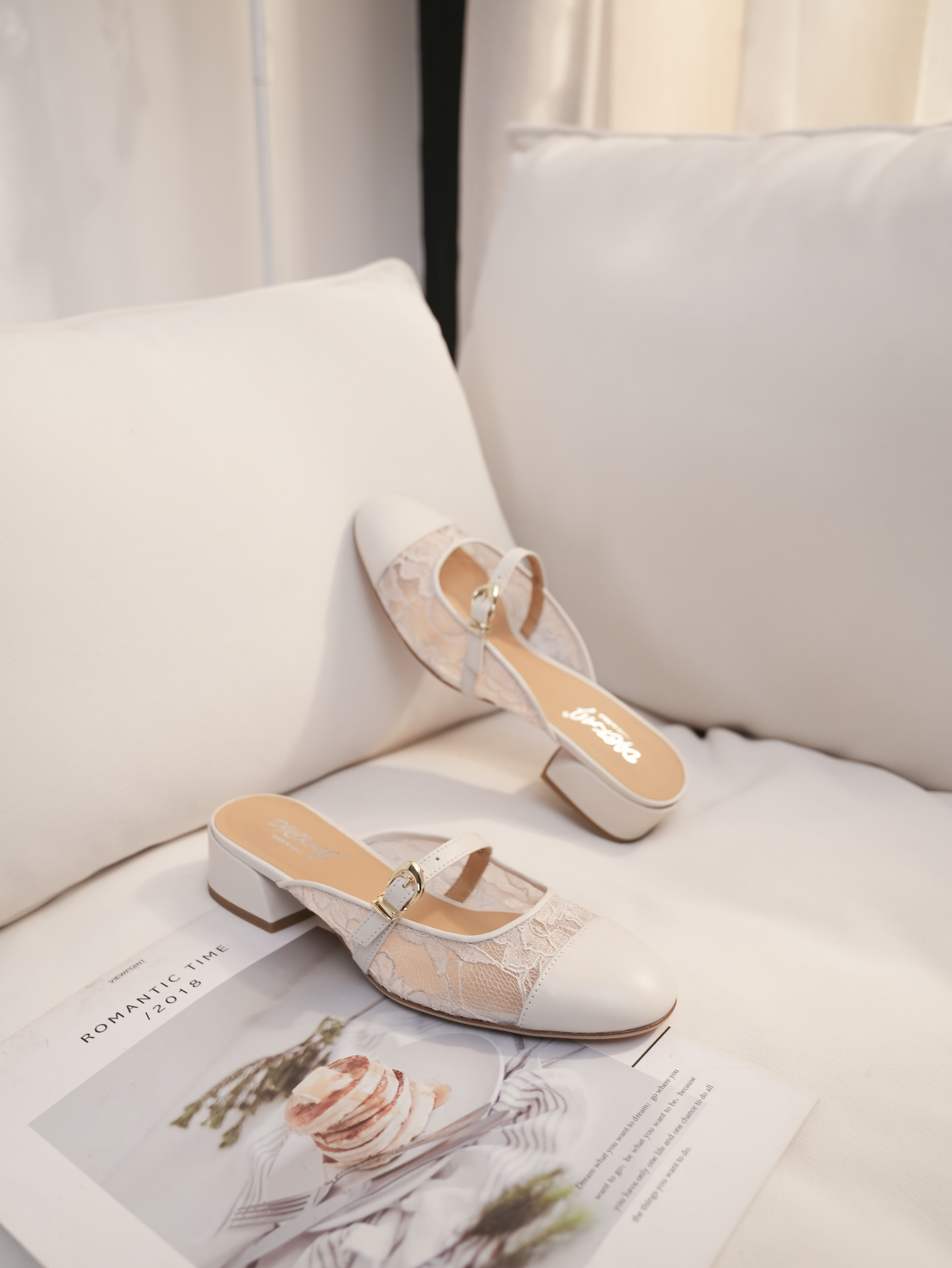 豪麟名鞋进口迪嘉女鞋半凉鞋织物+羊皮革S26383白色