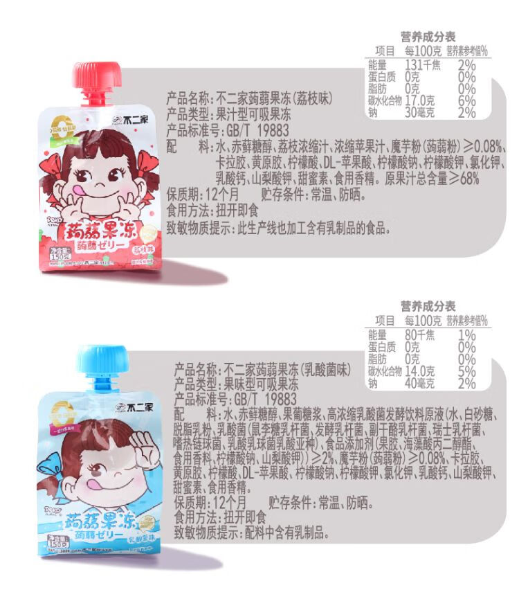 不二家蒟蒻果冻白桃味150g/袋