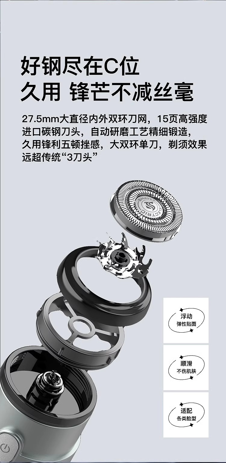 塞尔兰斯TX-100胶囊剃须刀 智能剃电动刮胡刀 便携车载防水剃须刀