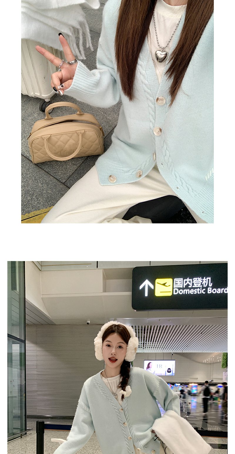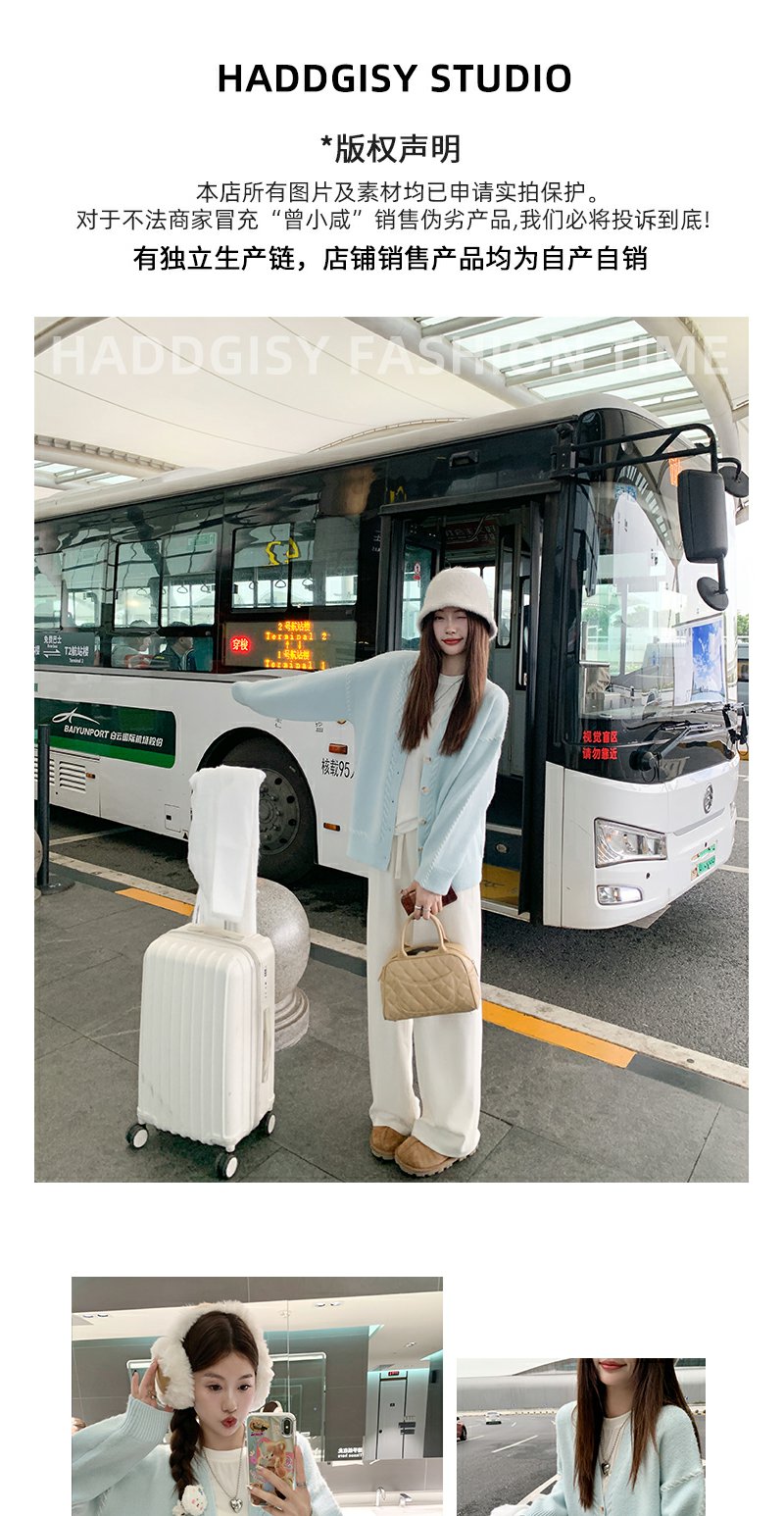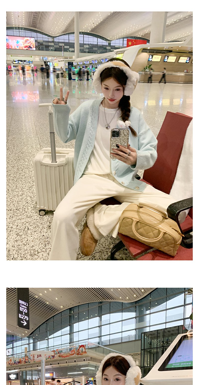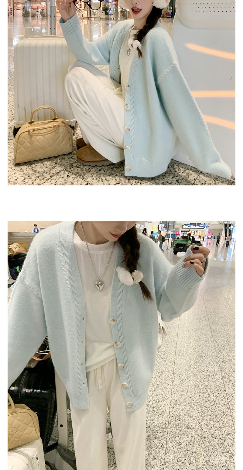 <曾小咸推荐>韩系V领宽松薄荷绿毛衣开衫