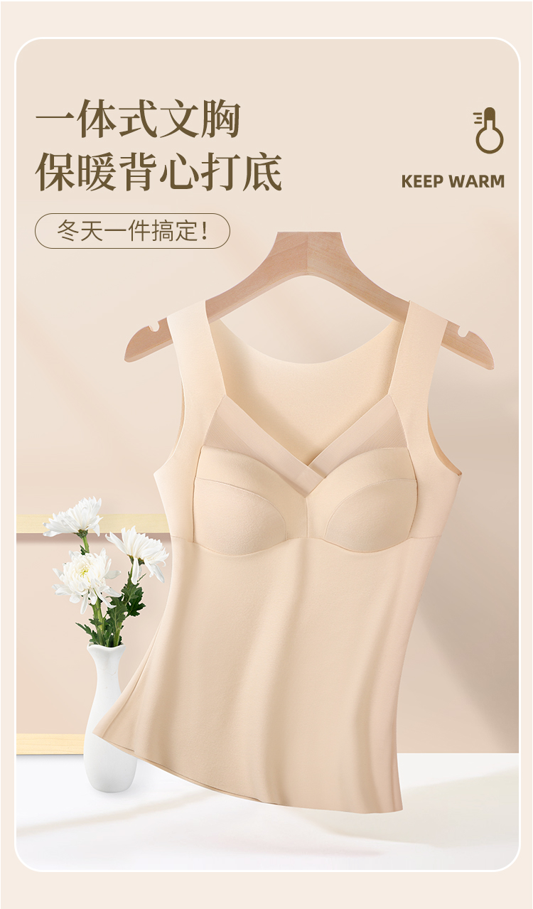 【买1送1 德绒免穿文胸背心】 一触即暖 连体3D按摩杯罩 聚拢挺拔 无痕隐形不卷边 保暖显瘦修身 告别冬天臃肿