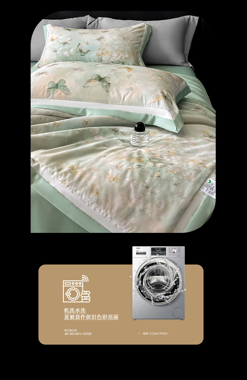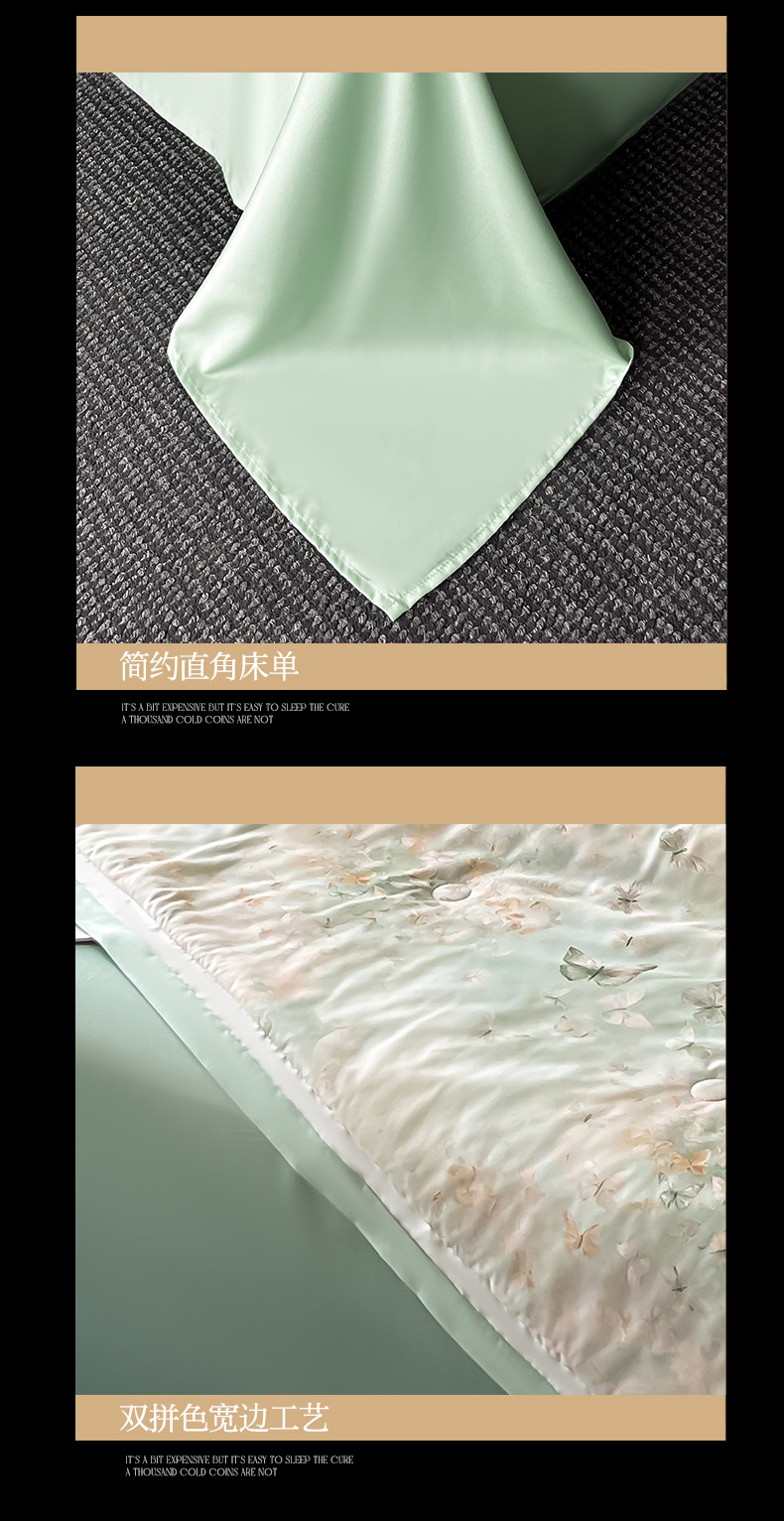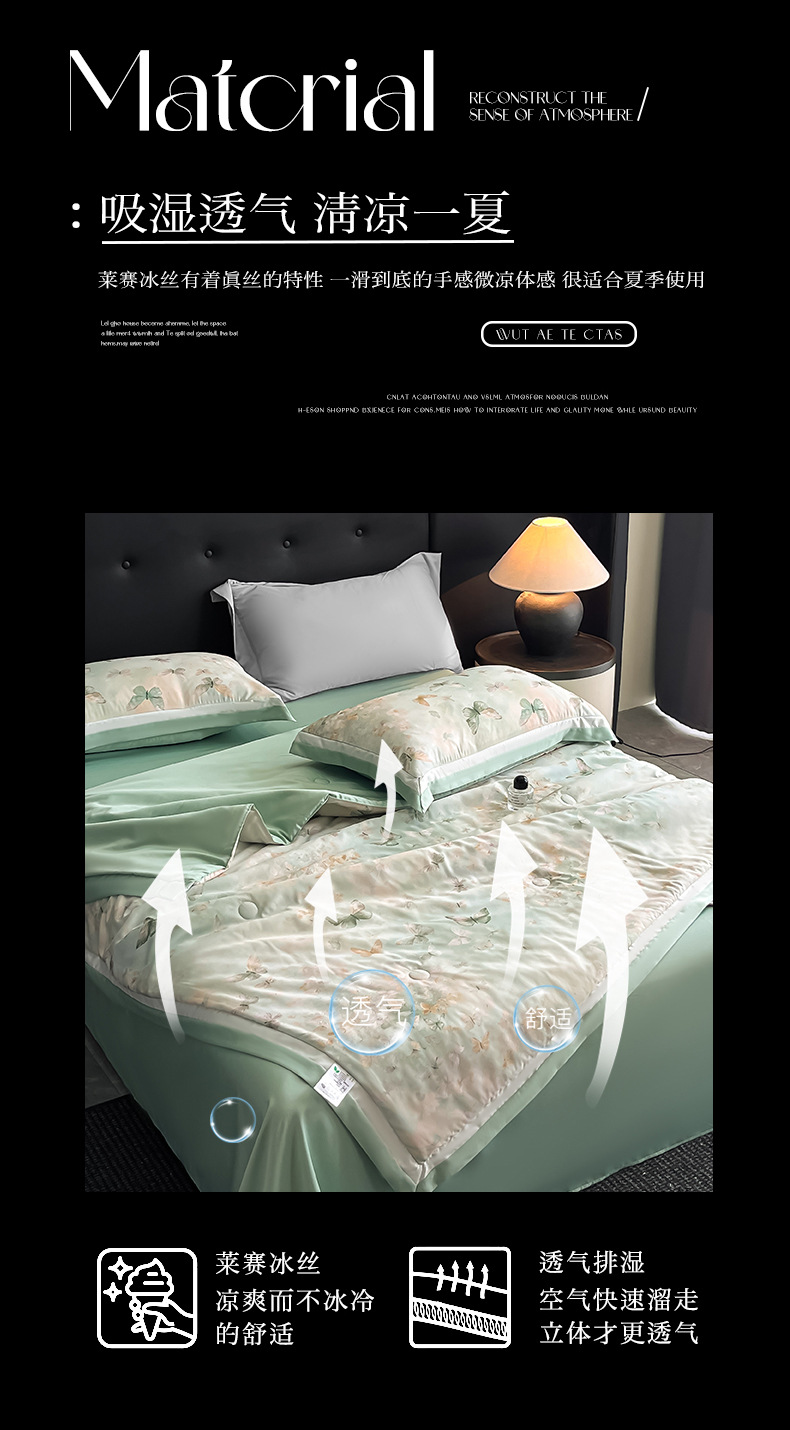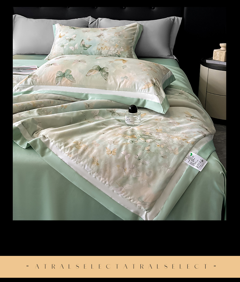 【丝滑莱赛冰丝❗️柔滑裸感四件套】a类100莱赛冰丝数夏凉被 水洗天丝夏被 四件套可机洗空调被 丝滑裸感薄被子