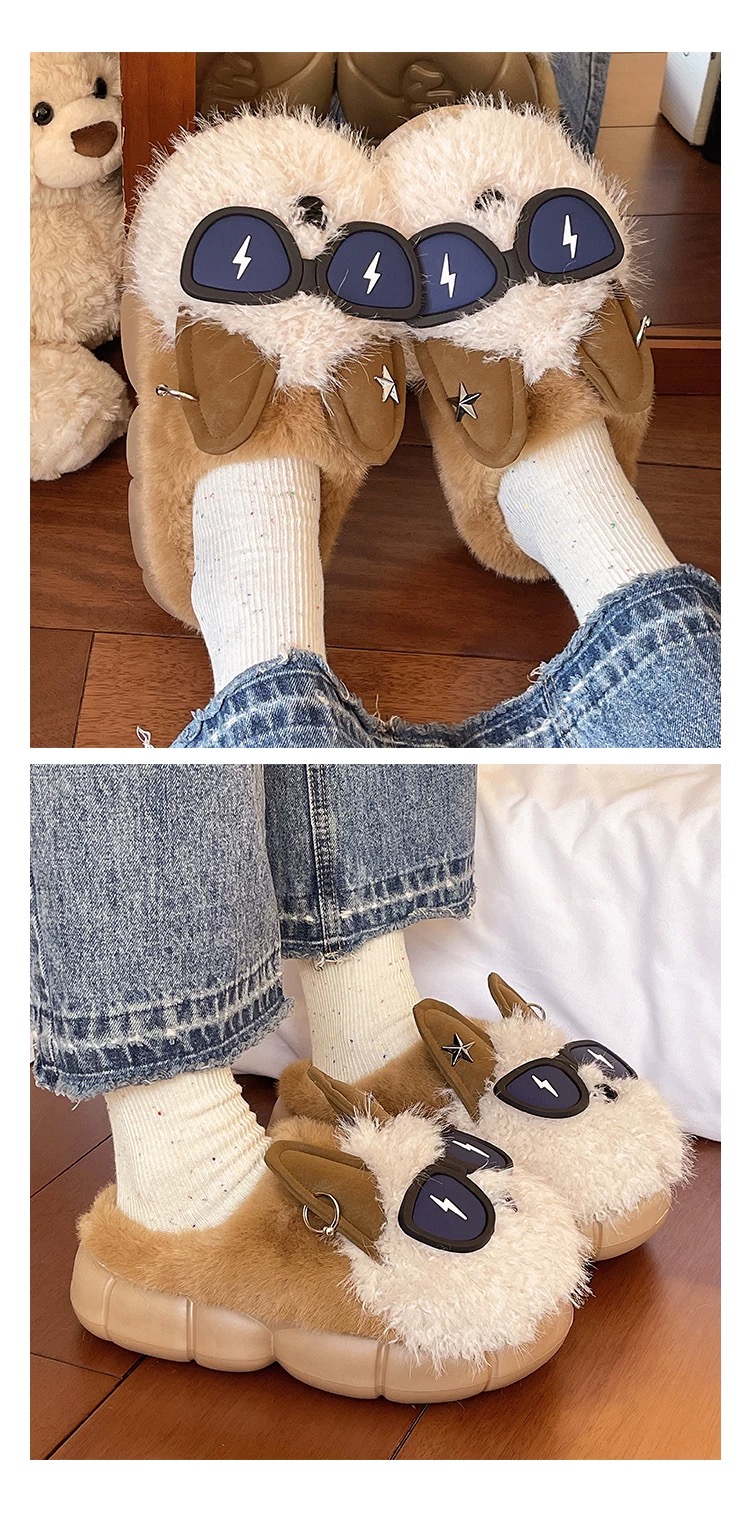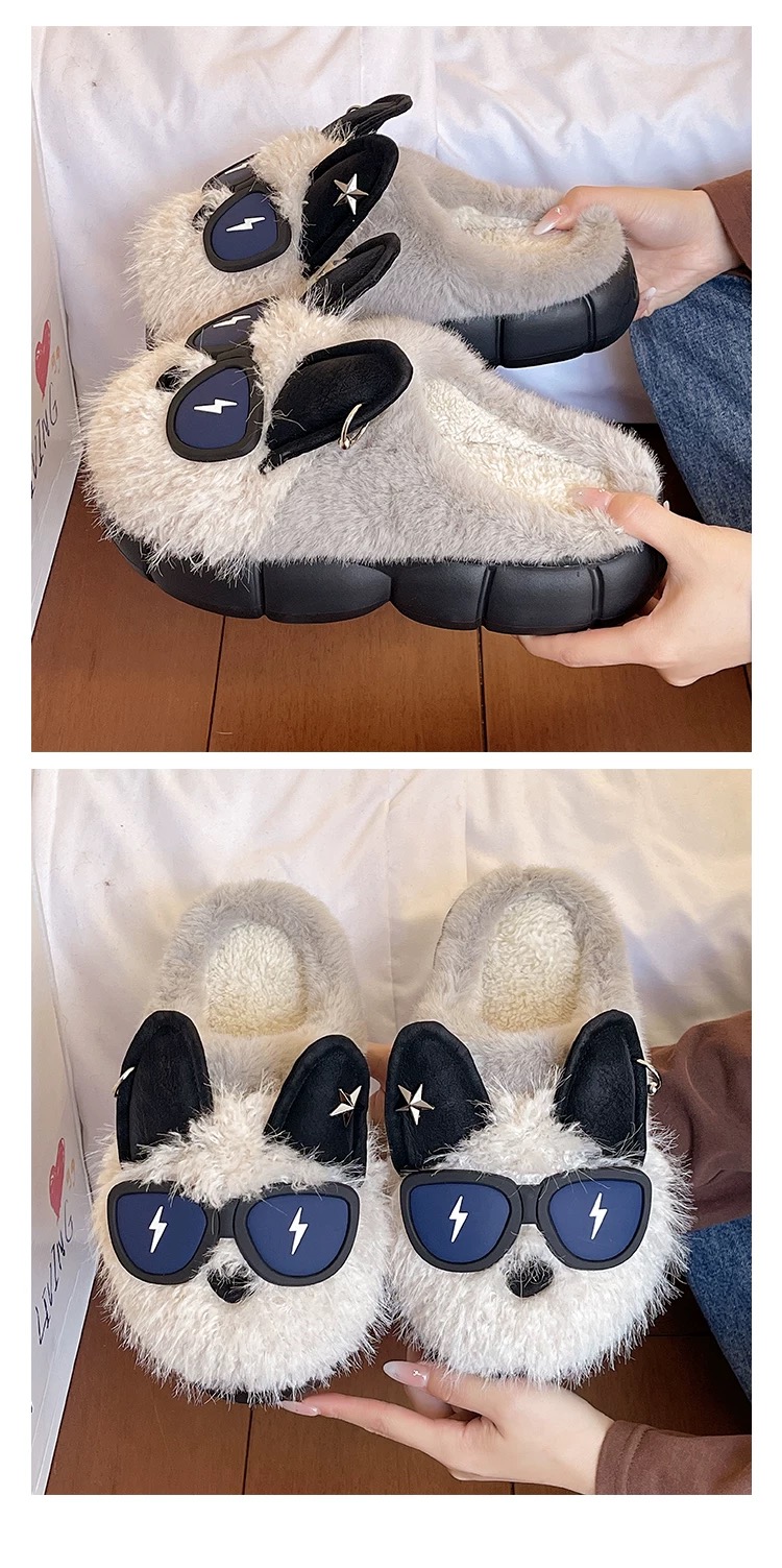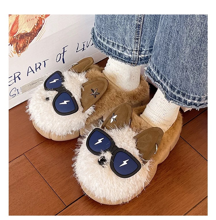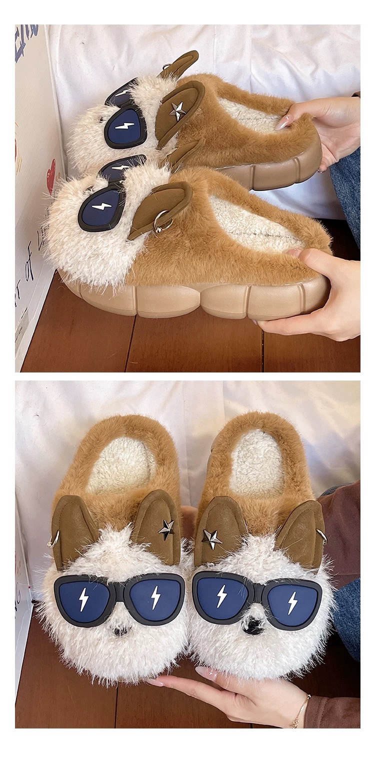 棉拖鞋女士冬季新款家居室内防滑厚底可爱小狗保暖毛绒拖鞋【WG25102】
