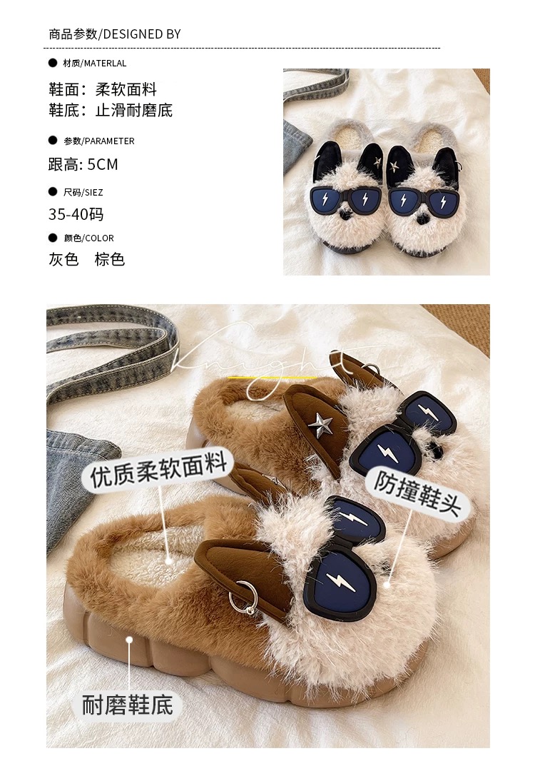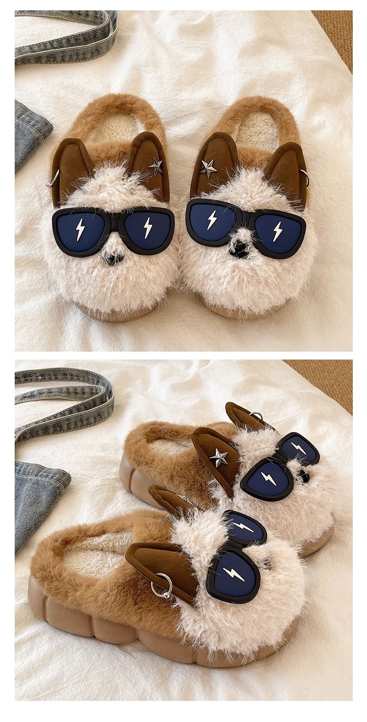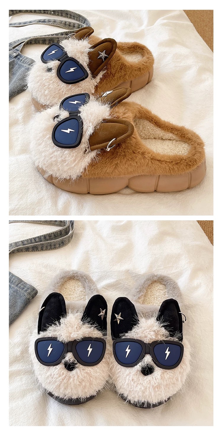 棉拖鞋女士冬季新款家居室内防滑厚底可爱小狗保暖毛绒拖鞋【WG25102】