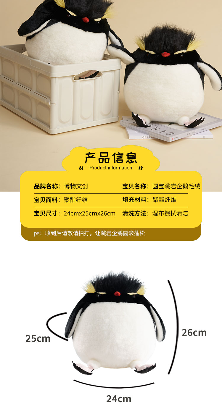 博物文创 大圆宝系列跳岩企鹅毛绒玩具玩偶 可爱呆萌节日礼物