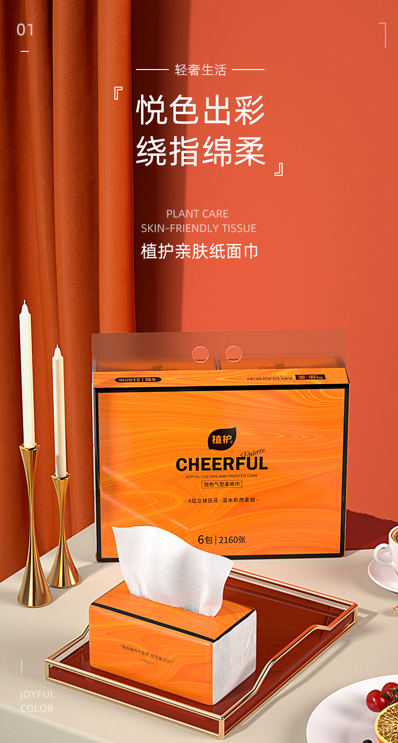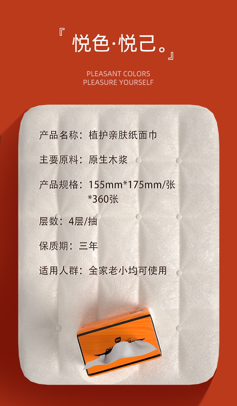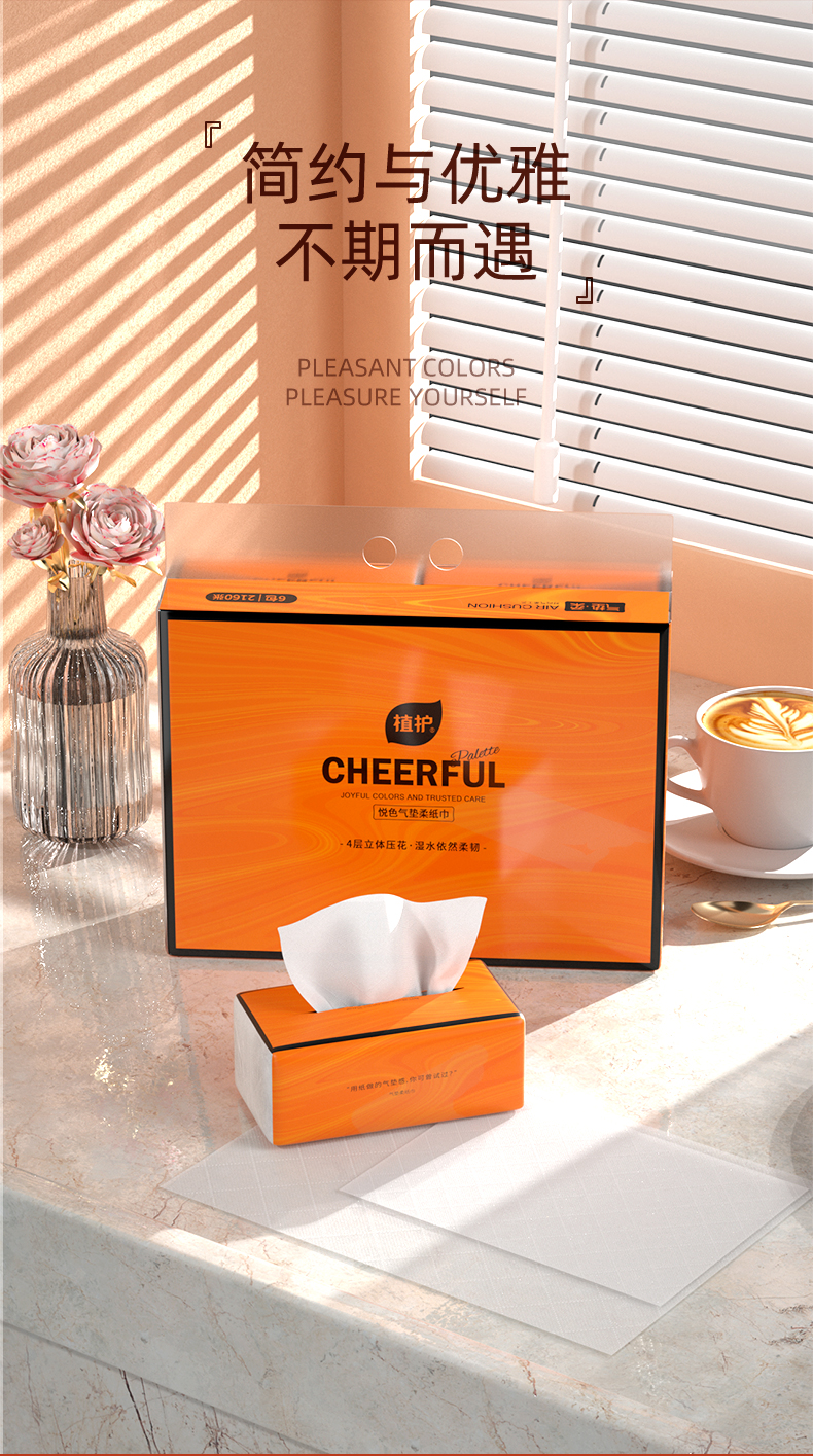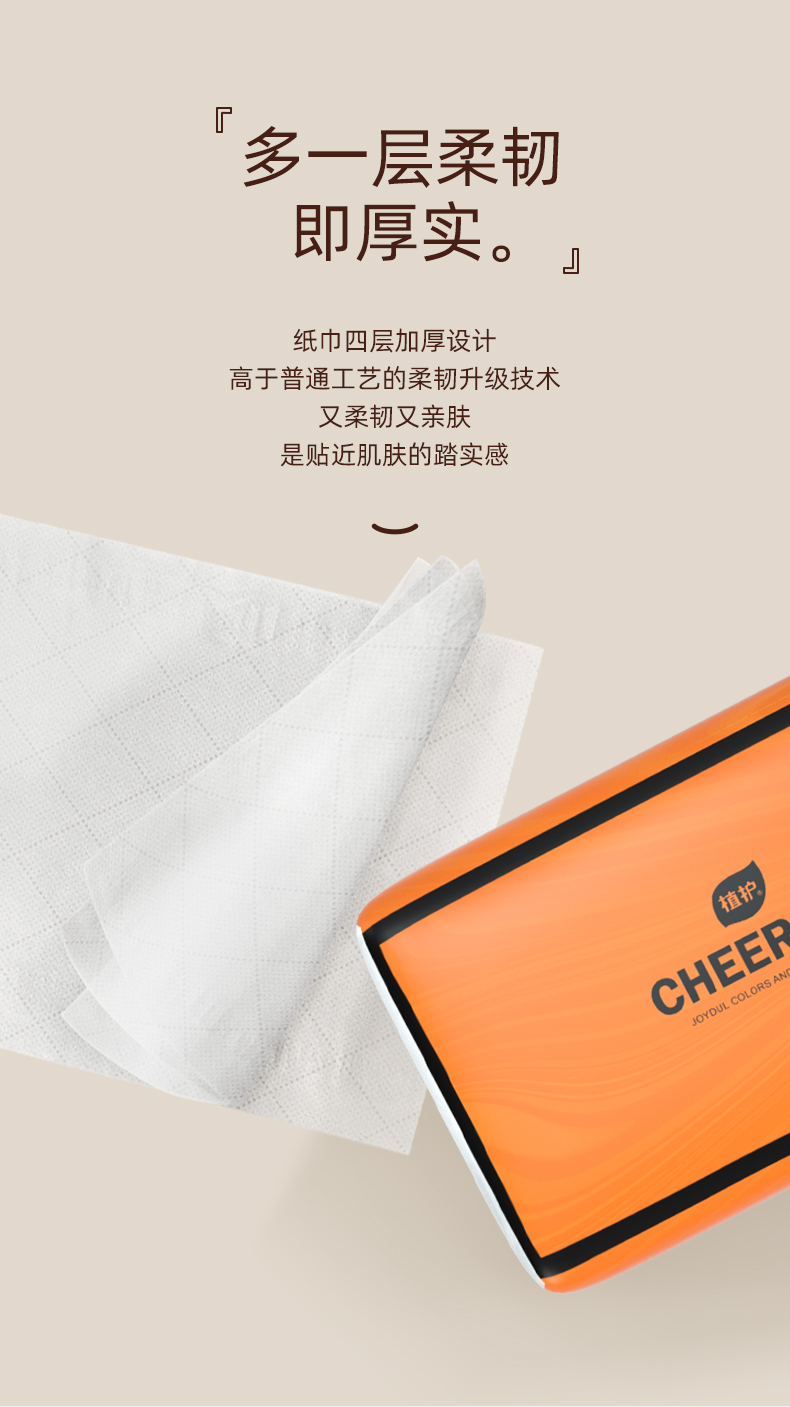 【自营】 植护 悦色橙 亲肤纸巾 4层 90抽/包 3包/6包/12包