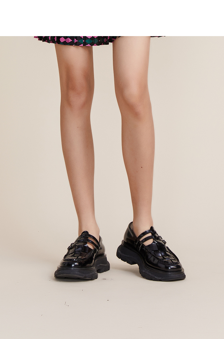 MIIDII谜底2022春新款厚底松糕单鞋法式学院风牛皮编织221MX0443