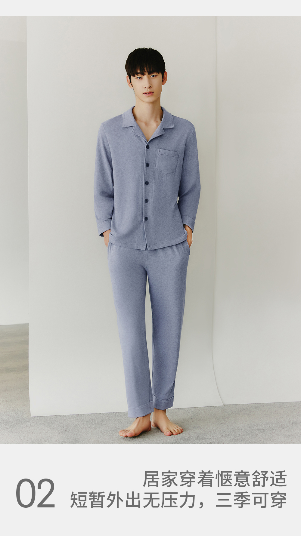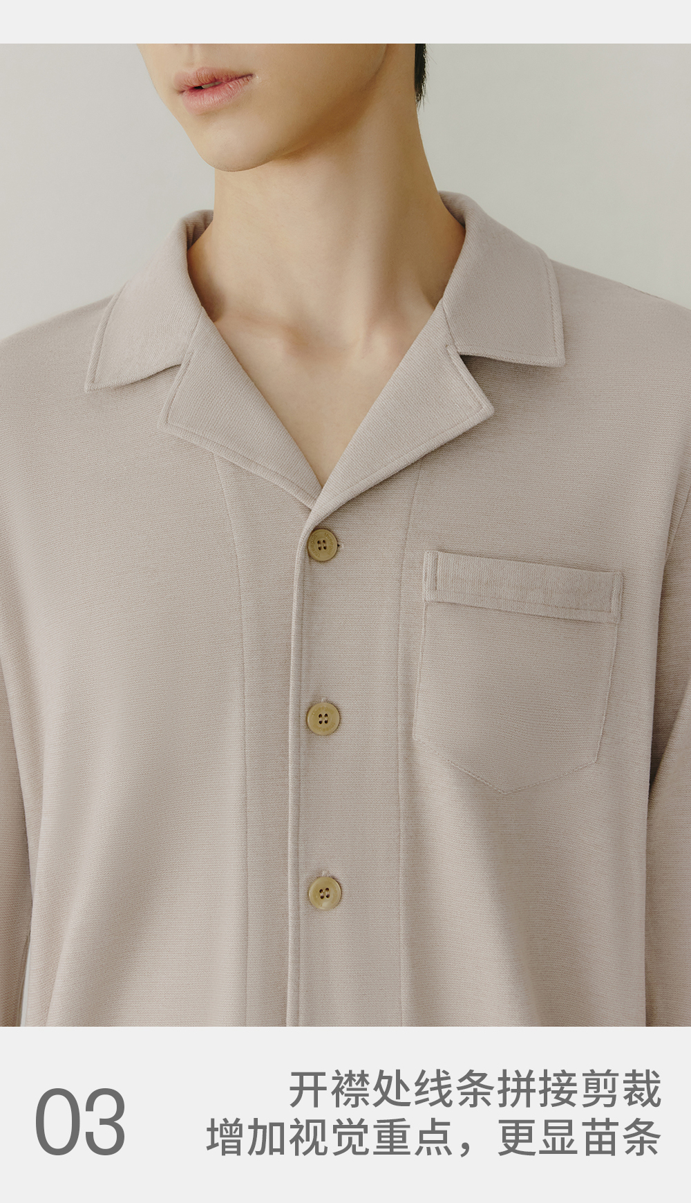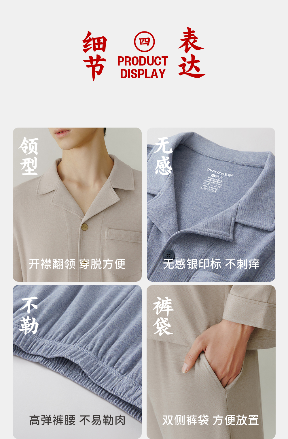 Threegun三枪 【华绒】翻领开襟男家居套-82245D011
