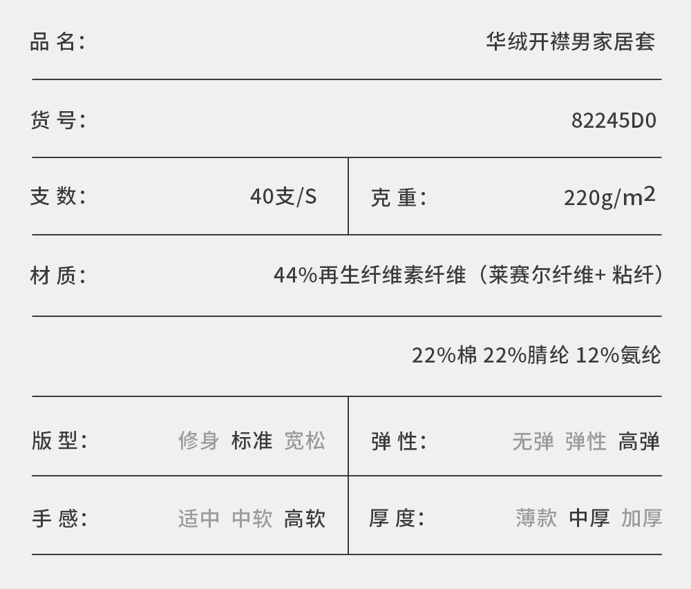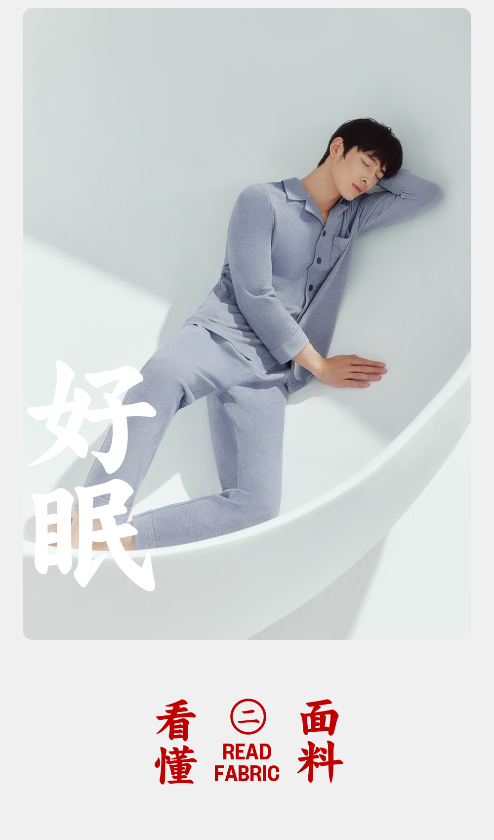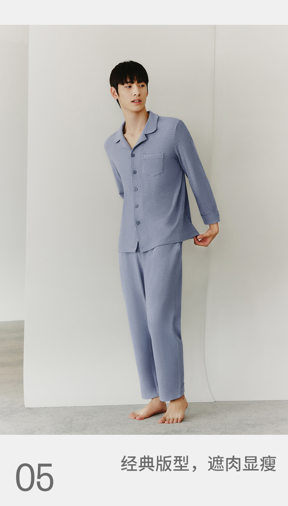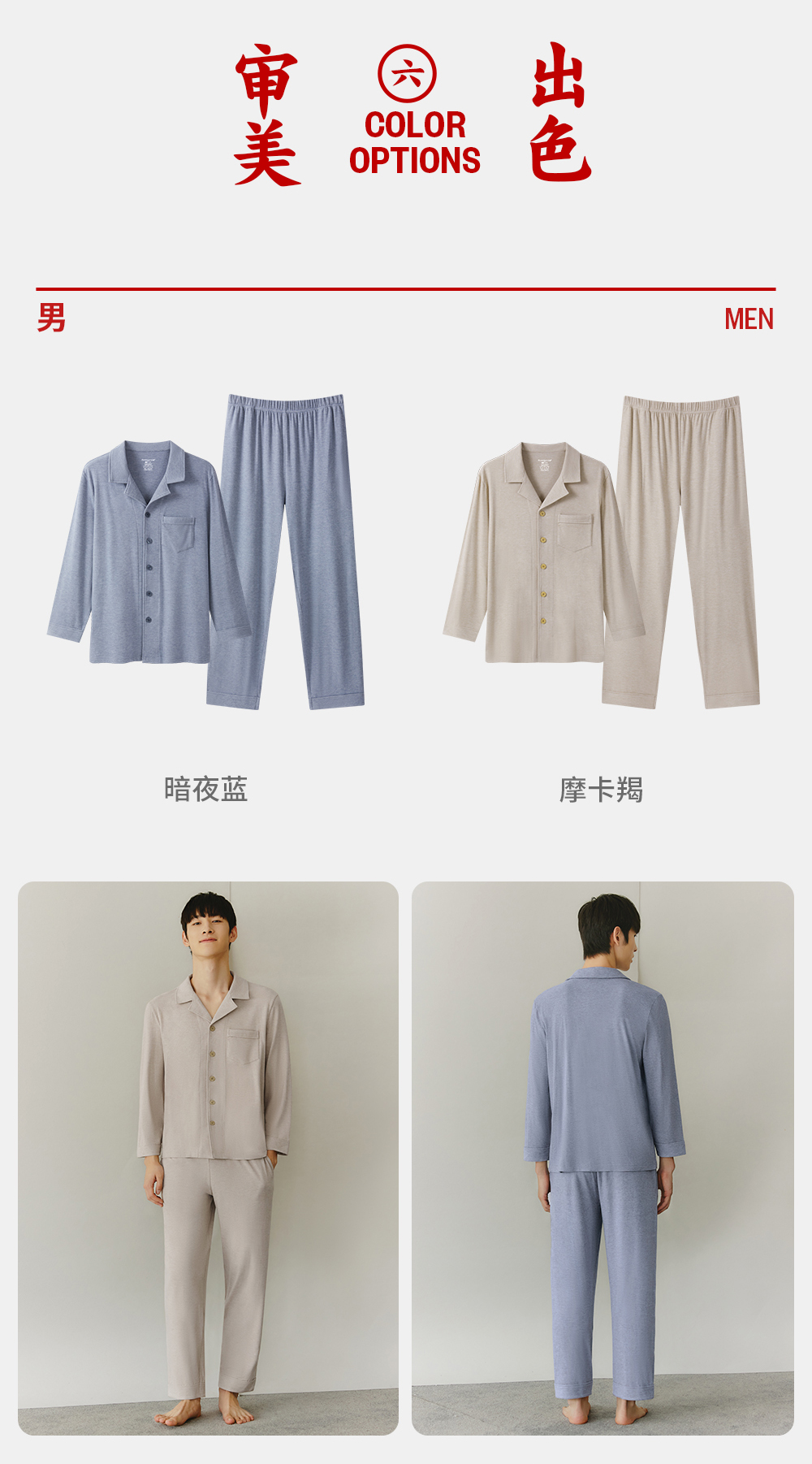 Threegun三枪 【华绒】翻领开襟男家居套-82245D011