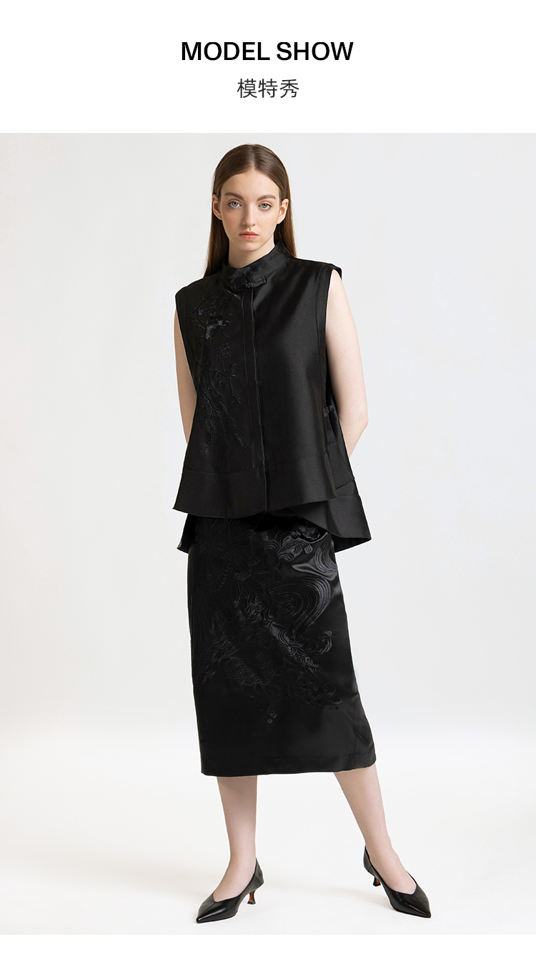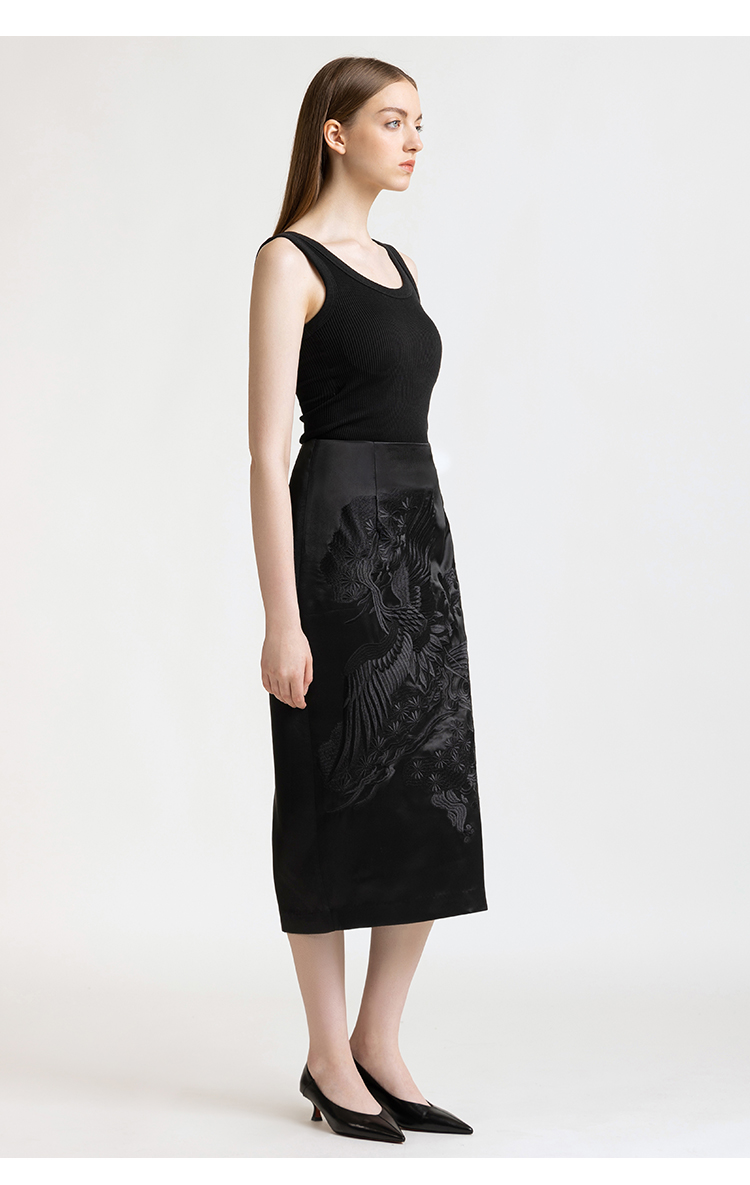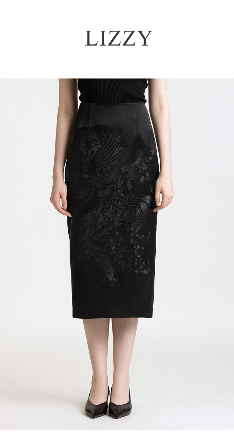 LIZZY 早秋 复古新中式刺绣修身中长款显瘦包臀半身裙7857