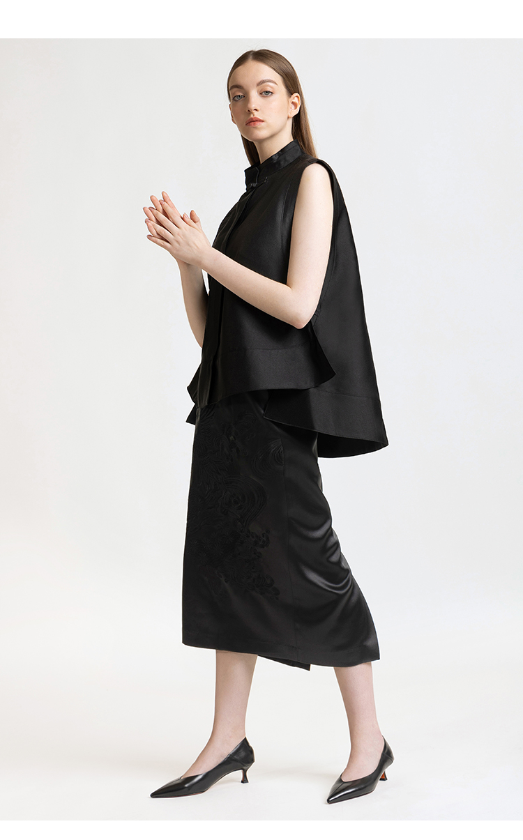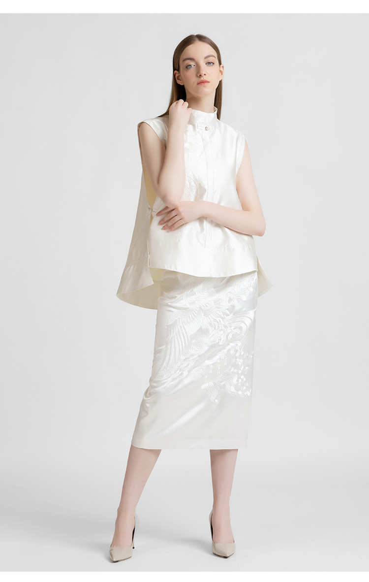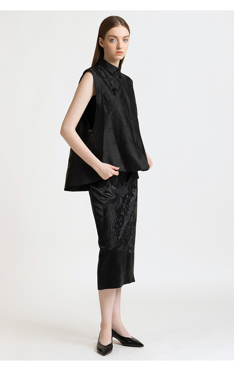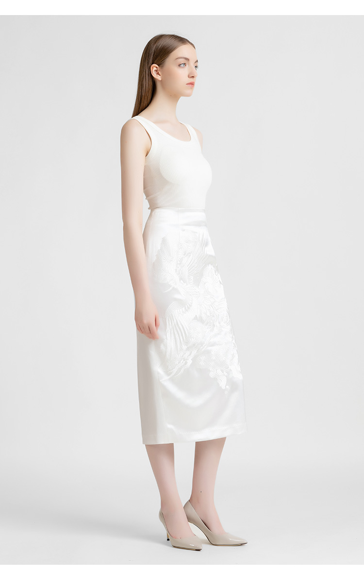 LIZZY 早秋 复古新中式刺绣修身中长款显瘦包臀半身裙7857