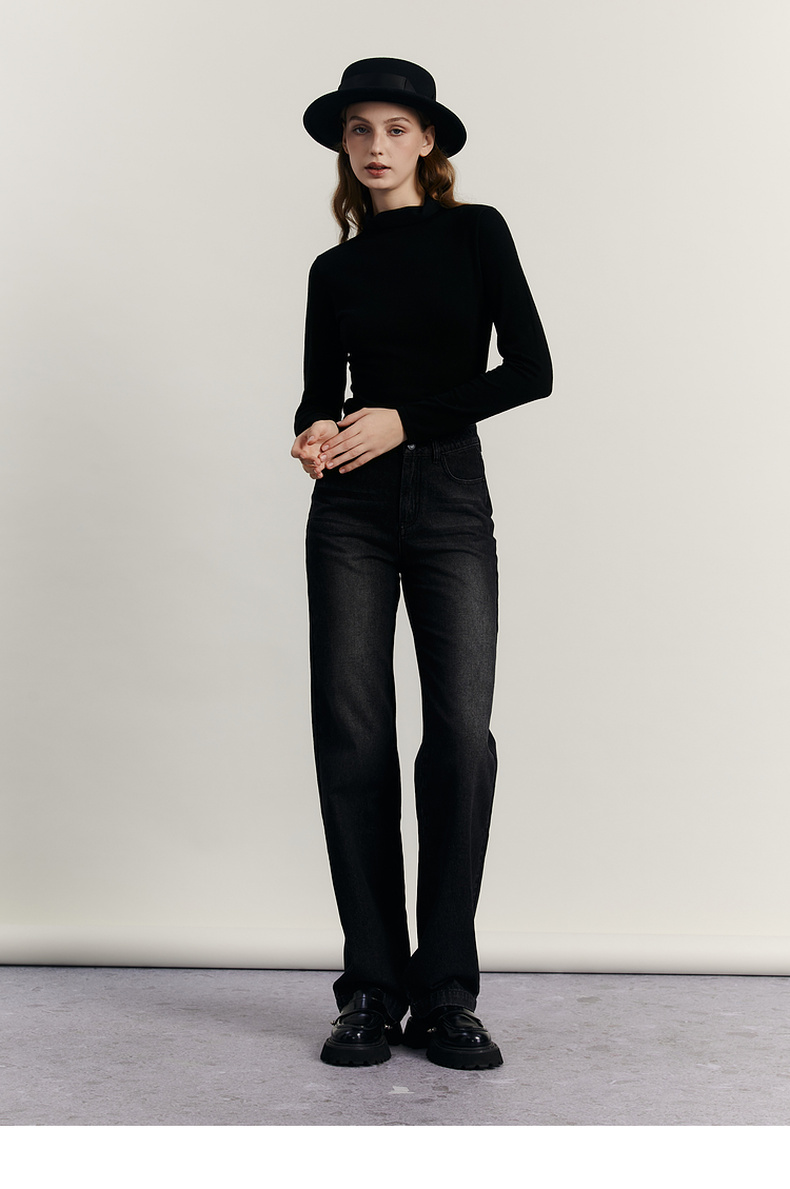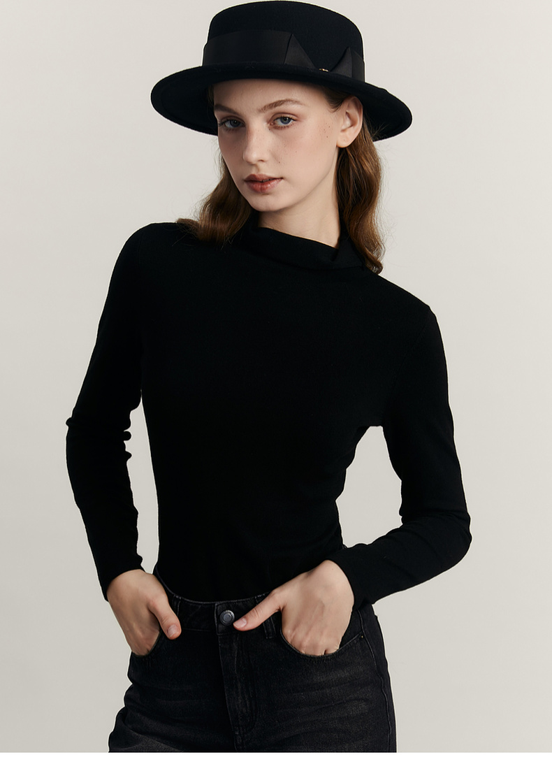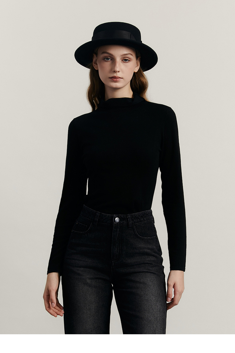 谜底打底针织衫女2023冬新品简约高领修身百搭亲肤毛衫234MZ1851