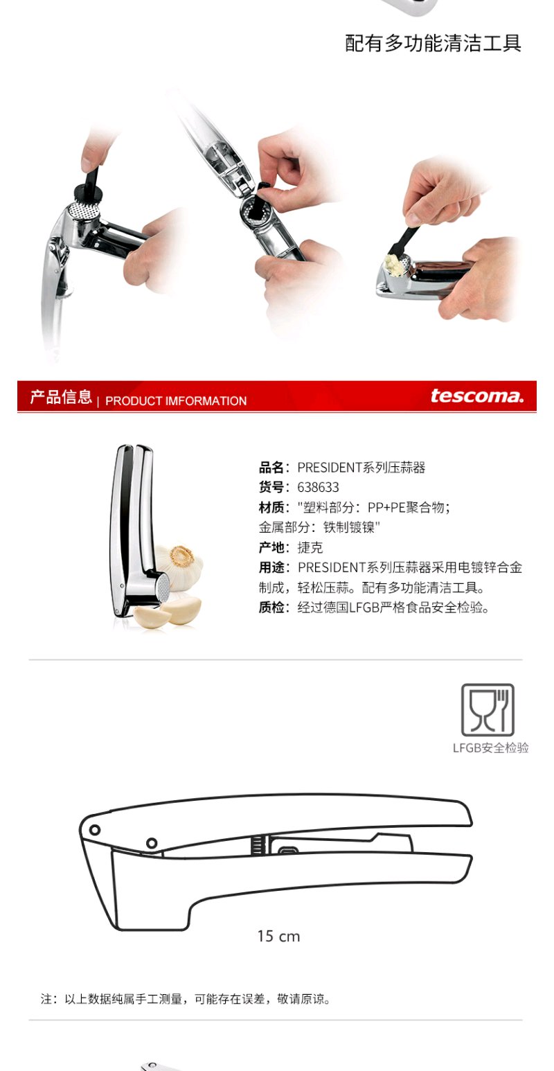捷克进口/tescoma 不锈钢压蒜器 挤蒜剥蒜器夹蒜器蒜蓉器